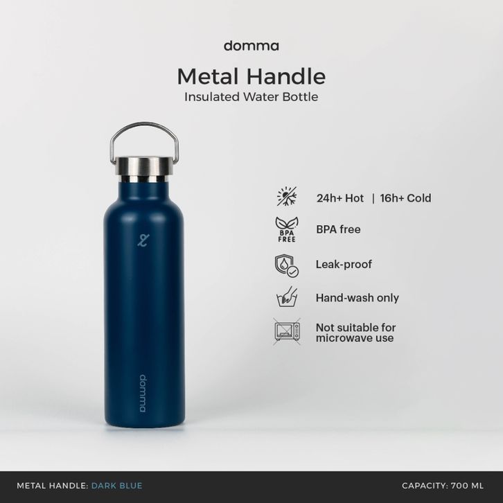 Domma 700 ml Metal Handle Lid Insulated Reusable Tumbler Water Bottle - Double Wall Stainless Steel Botol Minum Thermos