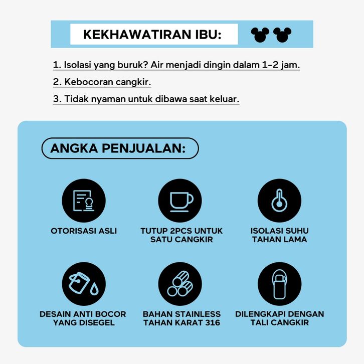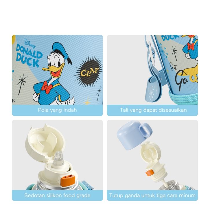 ecentio termos air panas mini anak stainless 316 sedotan Tumblr 500ml Disney edition Elsa&Donald Duck