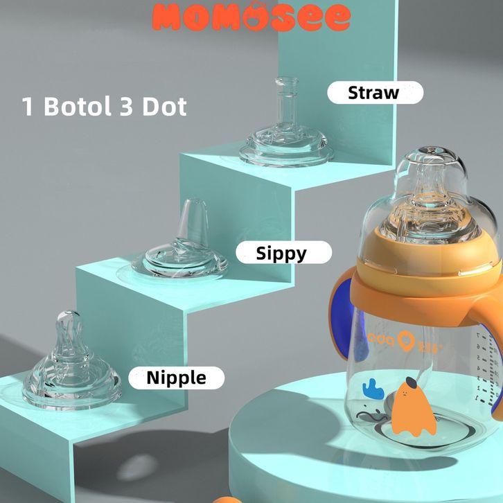 Momosee Botol Susu Bayi PPSU 3in1 Wide Neck Free Gift Box Botol Minum Bayi Anti Kolik 240ml & 300ml BPA Free BB12