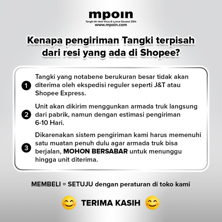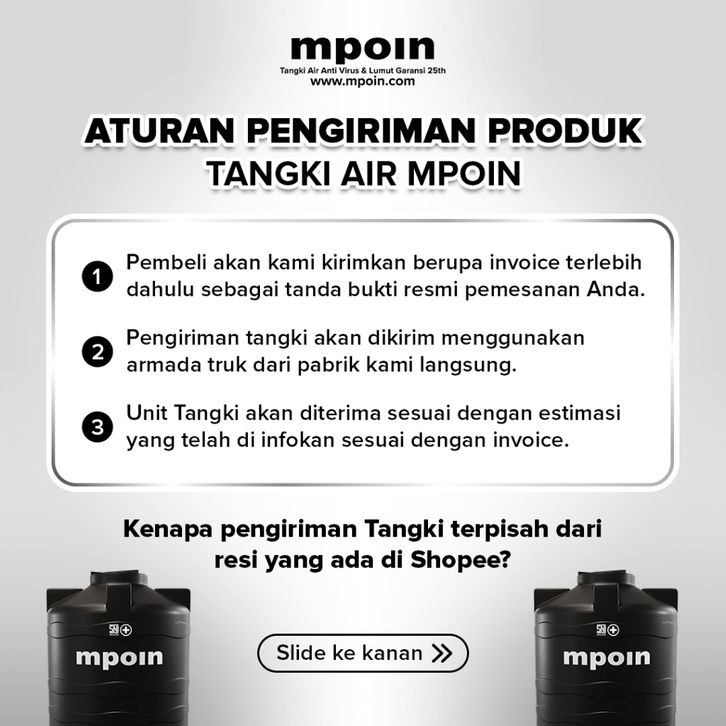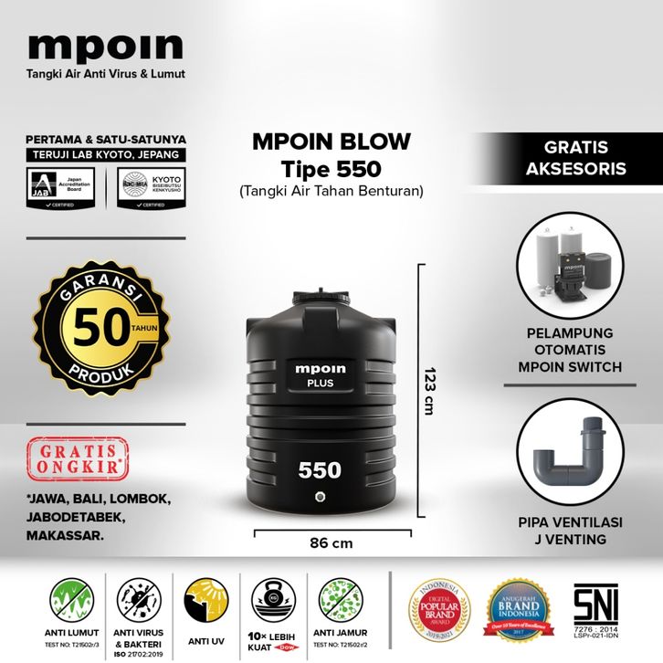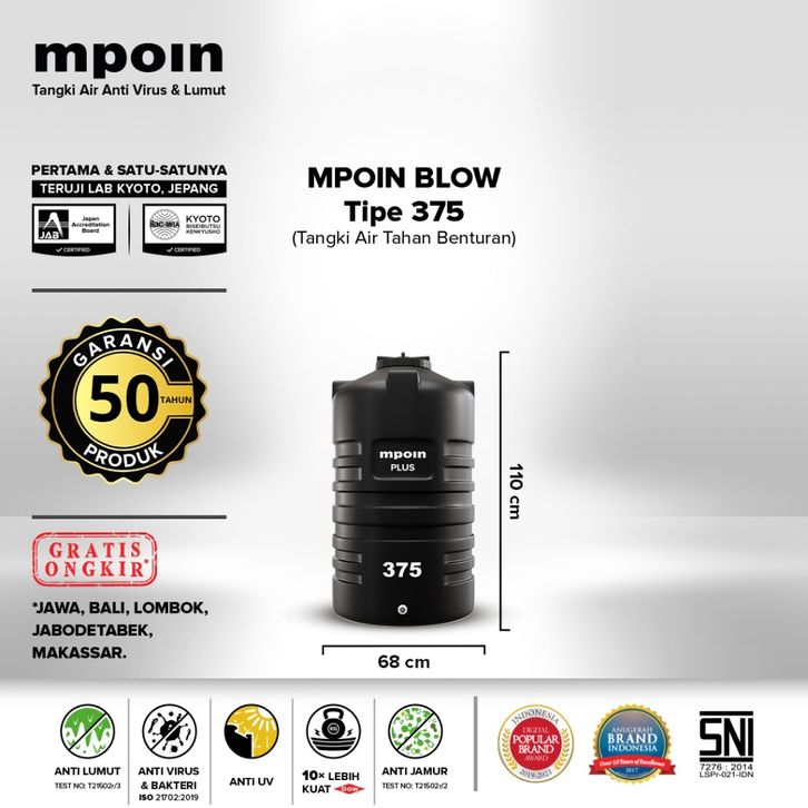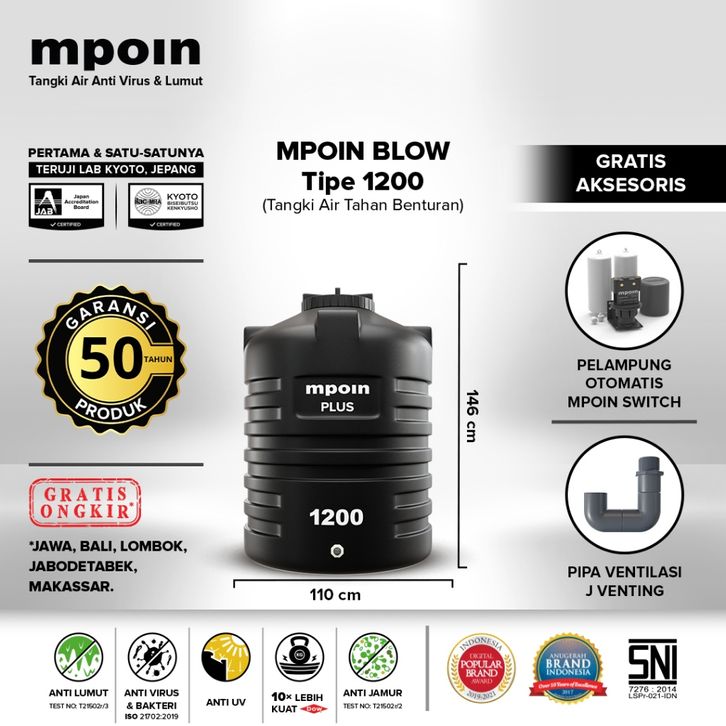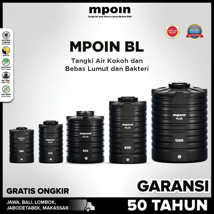 Tandon Toren Air Reguler MPOIN BL 300 sd 1200 Liter Garansi 50 Tahun Anti lumutTandon Toren Air Reguler MPOIN BL 300 sd