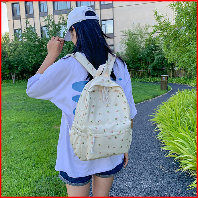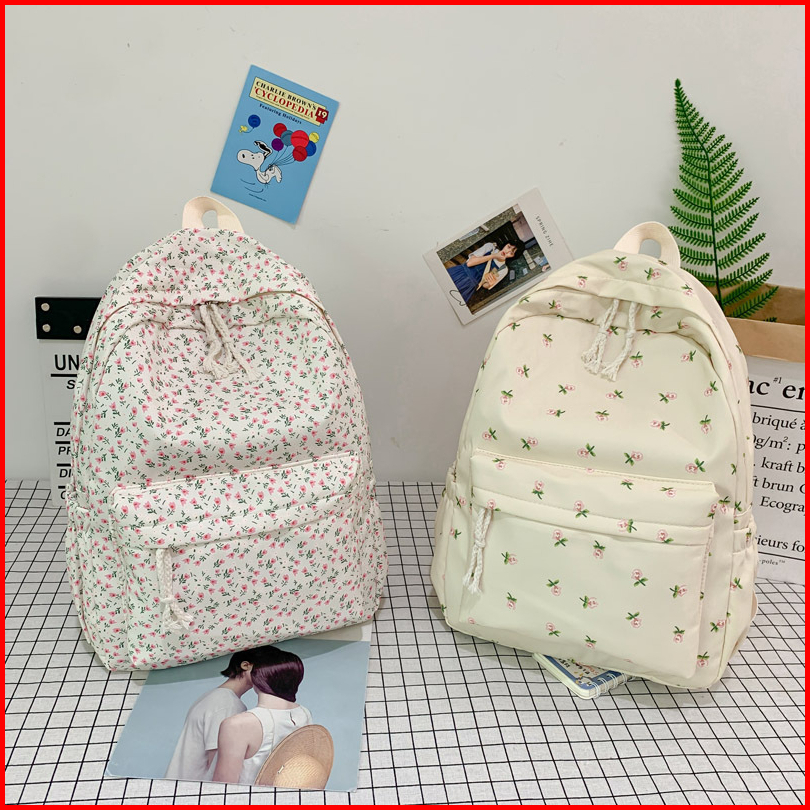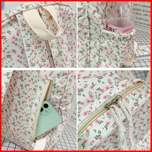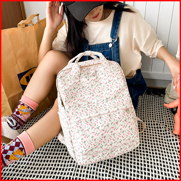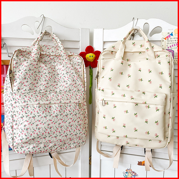 Tas Gendong Wanita Ransel Motif Bunga Floral Backpack Korean Style Import