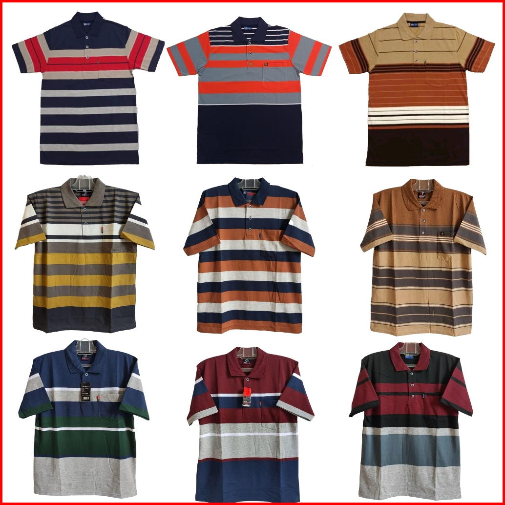 Liso Wear - Kaos Kerah Pria - Atasan Baju Katun Distro Motif Salur Dewasa Lengan Pendek