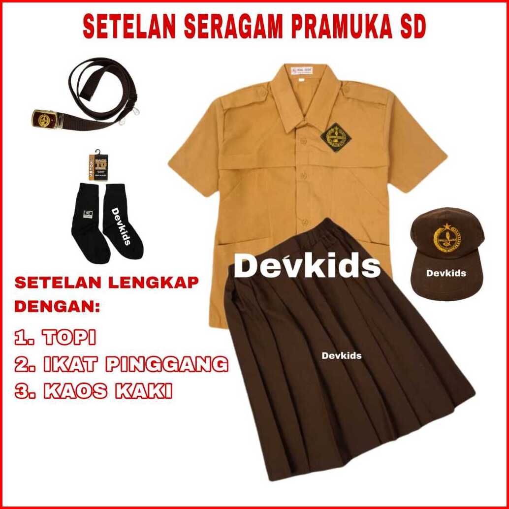 Devkids Seragam Sekolah Sd Setelan Super Lengkap Pramuka Serba Pendek Perempuan Kelas 1-6 Sd