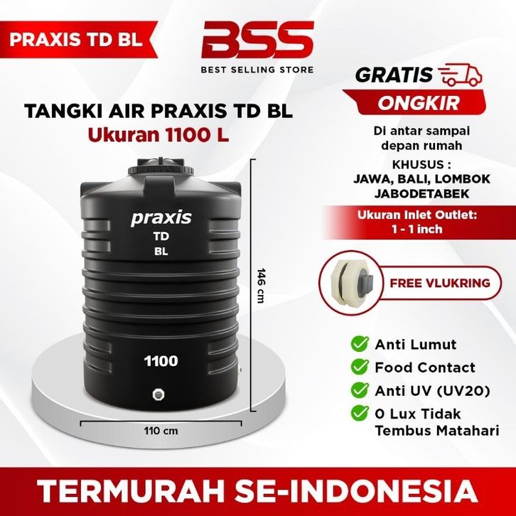 Tandon Tangki Air PRAXIS 350 Liter s/d 1100 liter Anti Lumut Food Grade Termurah Se Indonesia