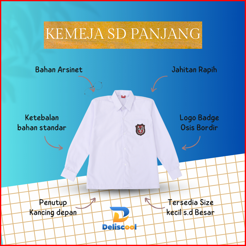 Seragam Sd Atasan Putih Lengan Panjang - Seragam Sekolah - Baju Seragam