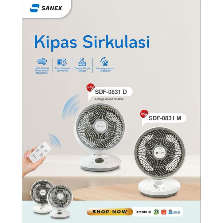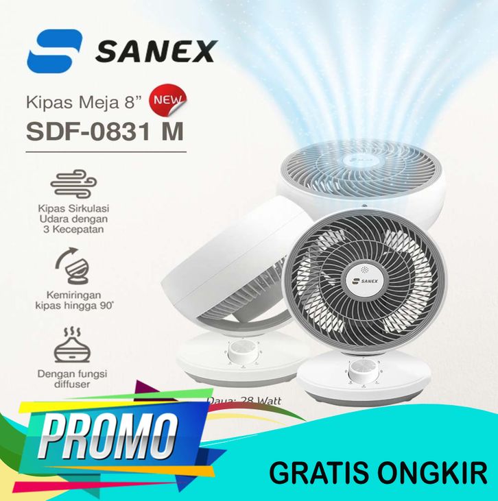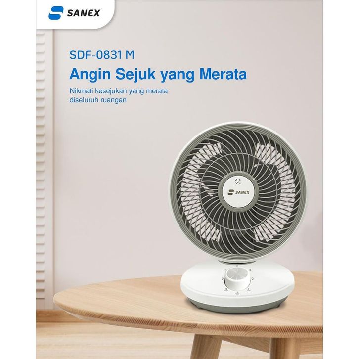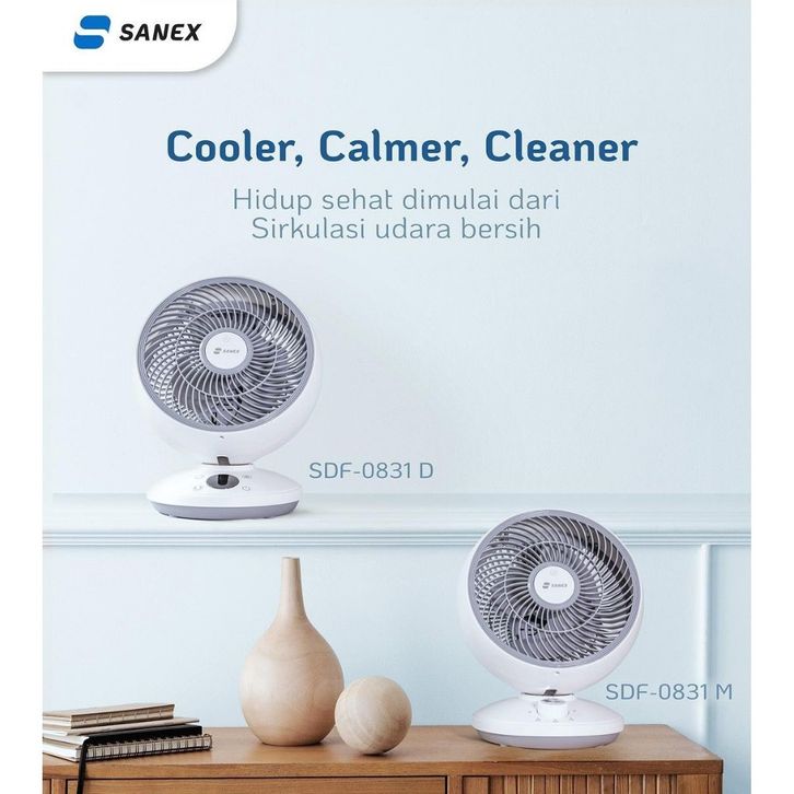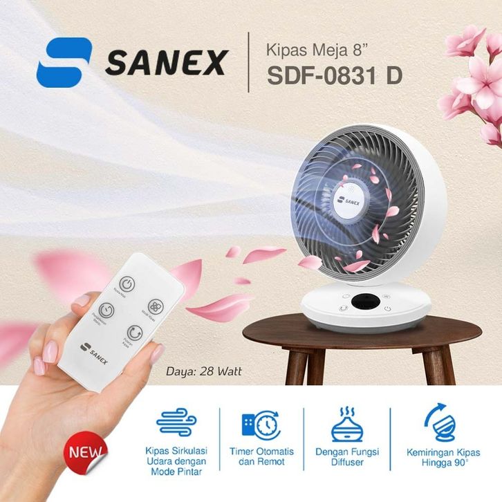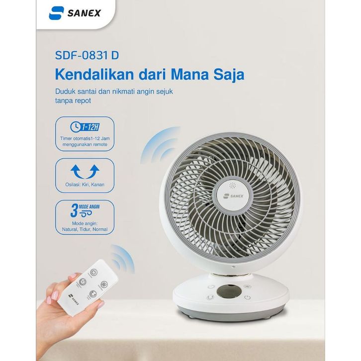 SANEX Desk Fan Kipas Angin Meja 8 Inch SDF - 0831 D Design Modern & Minimalis Warna Putih White + Remote