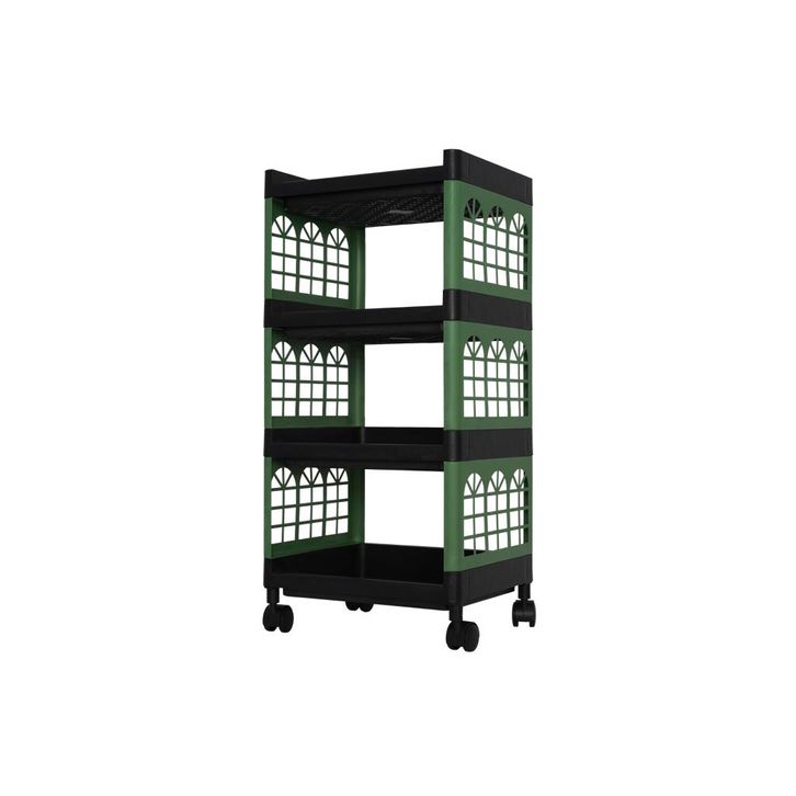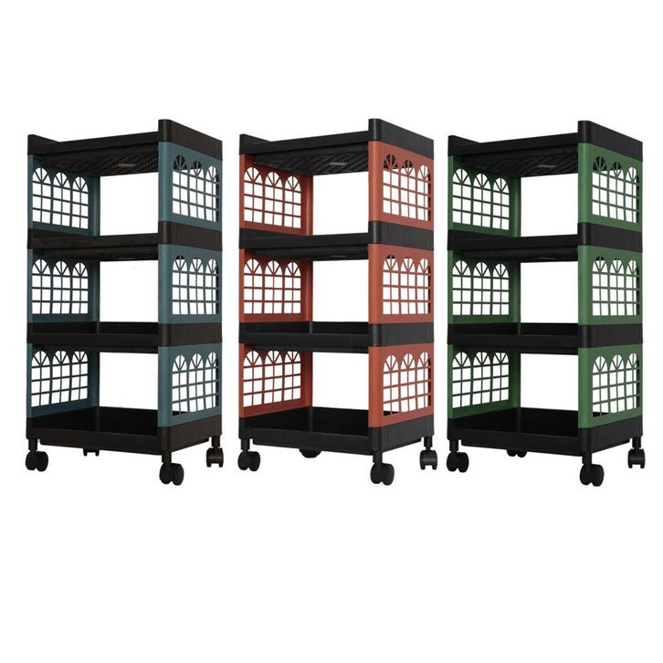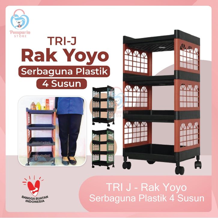 Tri J Rak Yoyo Serbaa Plastik 4 Susun Rak Roda 4Tingkat Rak Troli 4 Susun Rak Dorong Portable Dapur Kamar Mandi