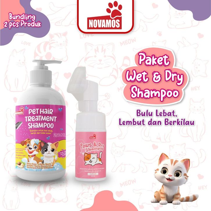 Shampoo Perawatan Bulu Kucing dan Anjing (Pet Hair Treatment 250 ML & Paws Dry 100 ML)