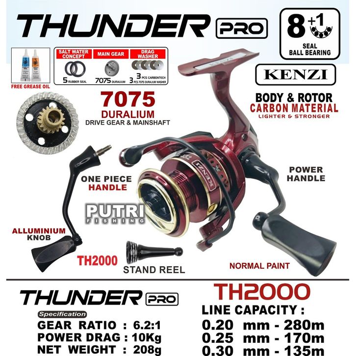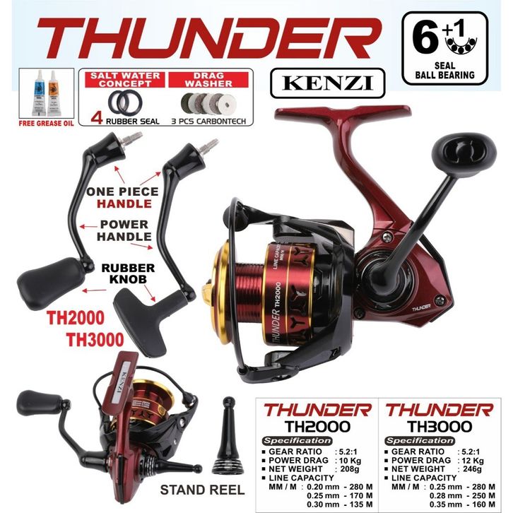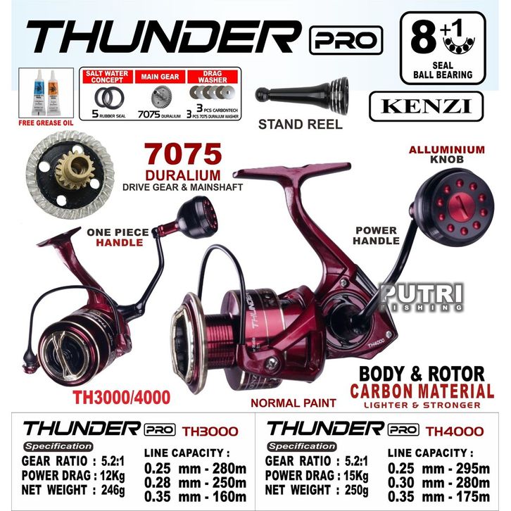REEL KENZI THUNDER PRO SW 2000 3000 4000 with Reel Stand Duralium Carbon Material One Piece Power Handle