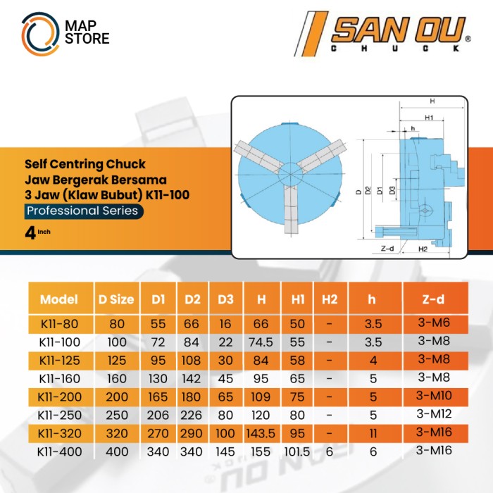 CHUCK BUBUT 4" 3 JAW / CLAW BUBUT 3 JAW / CATOK KEPALA BUBUT 4 INCH