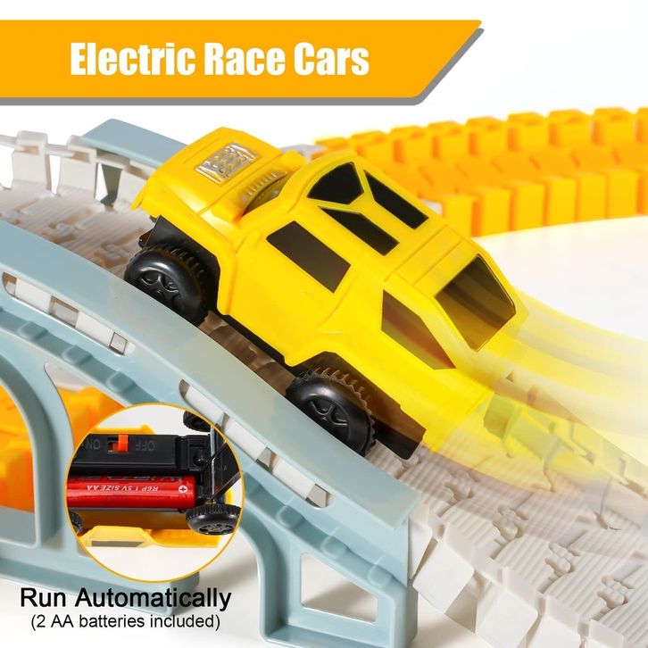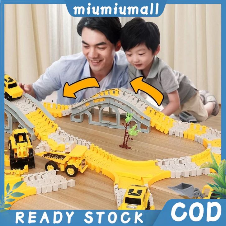 Kereta Mainan Kereta Miniatur 【Harga minimum】334PCS DIY Mainan Mobil Rel 2 Mobil Hadiah Ulang Tahun anak laki laki Mobi