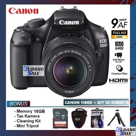 KAMERA CANON EOS 1100D PLUS LENSA KIT 18-55MM IS CAMERA DSLR 1200D 4000D