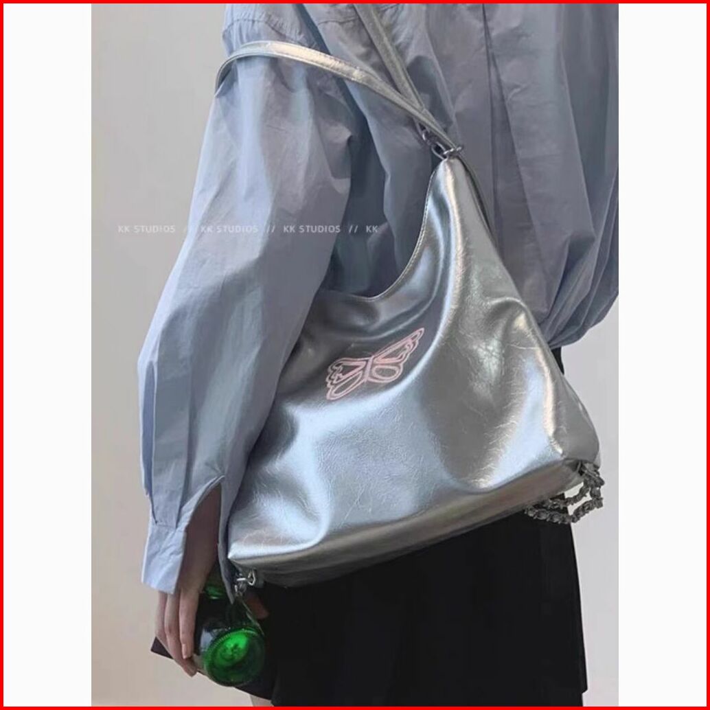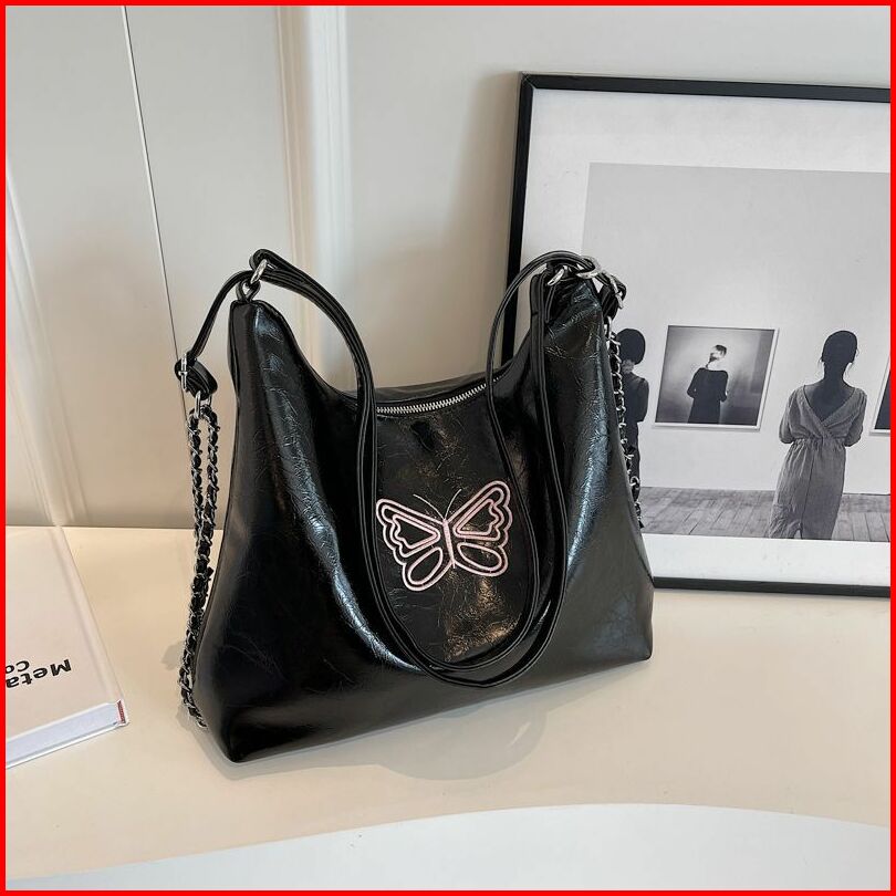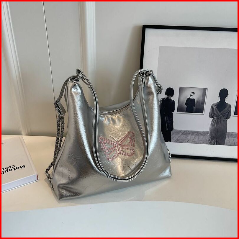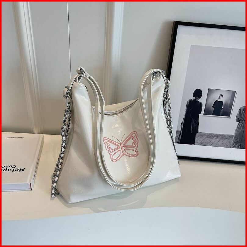 Tas Bahu Wanita Rantai Tas Bahu Kupu-kupu Tas Bahu Genggam Berkapasitas Besar Tas Jinjing Tote Tote Bag Pasang Surut Tas