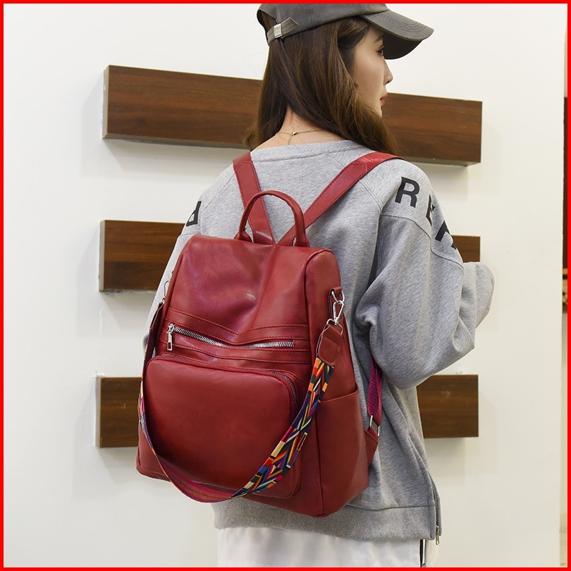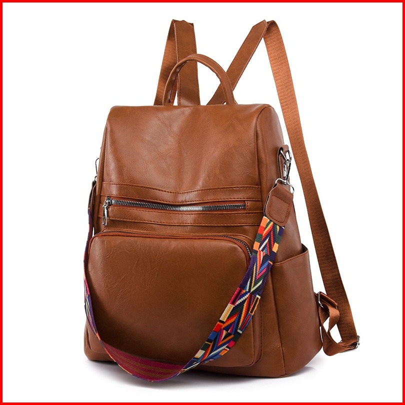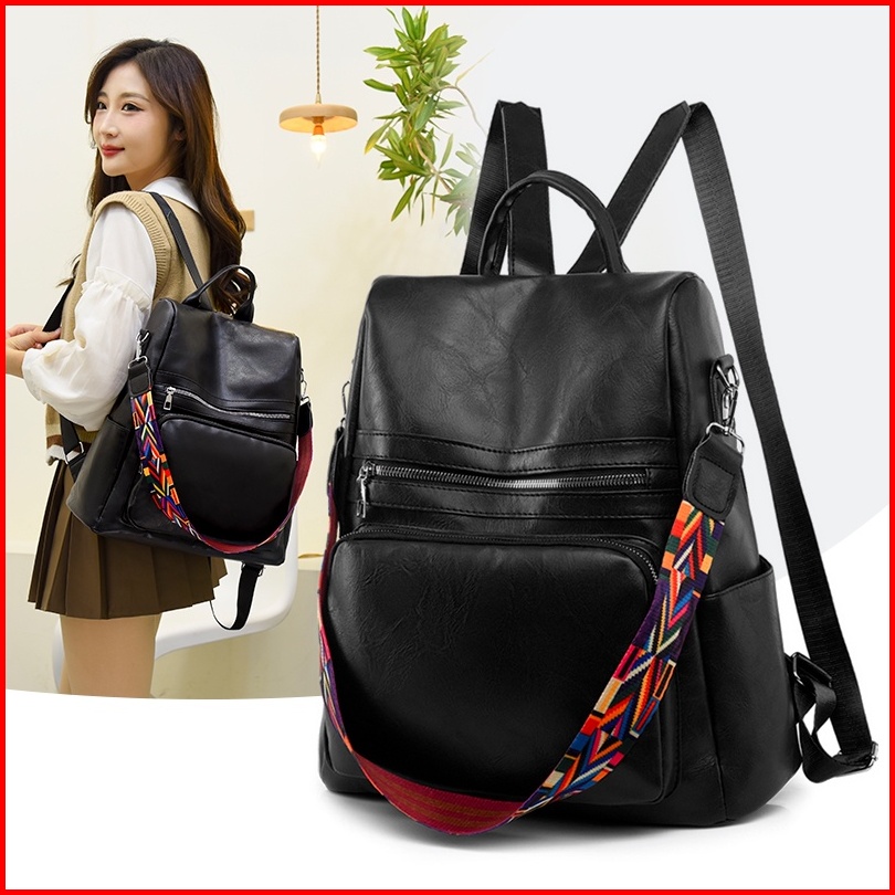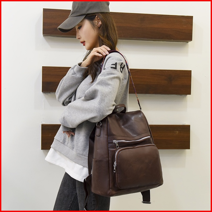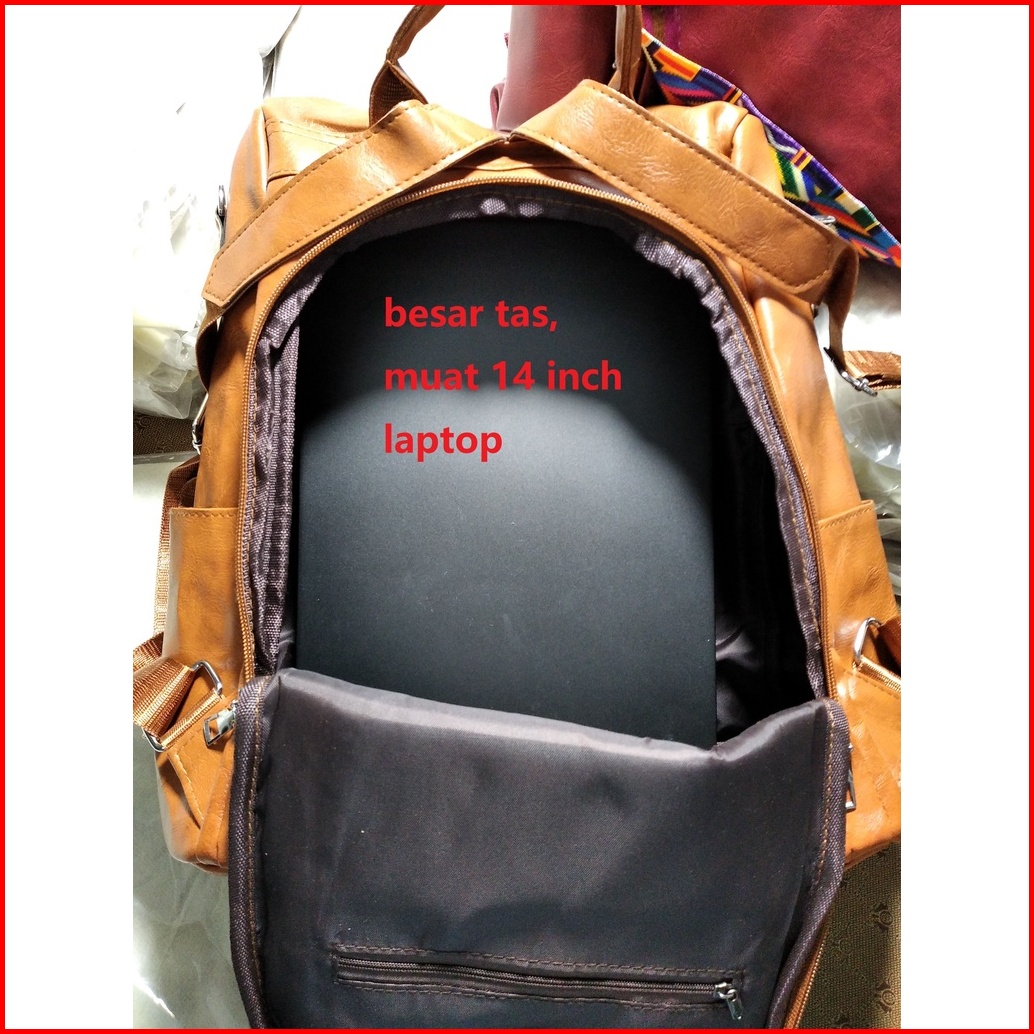 14 Inch Laptop Tas Besar Bag Perempuan Waterproof Leather Ransel Wanita Tas Backpack Sling Shoulder Multifunction Tas Se