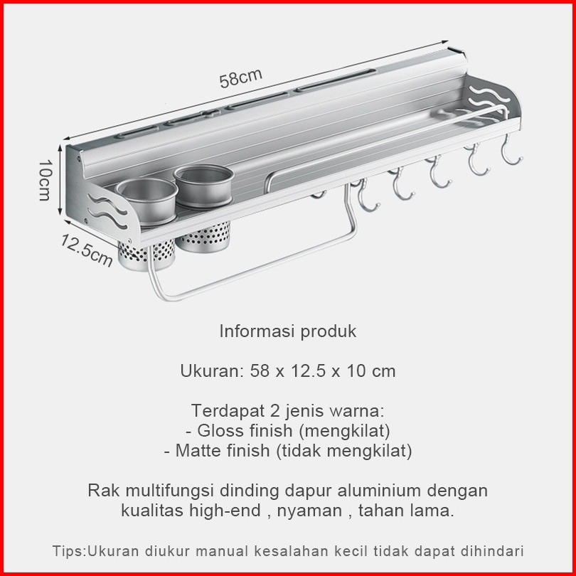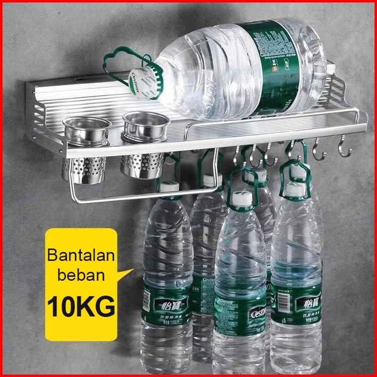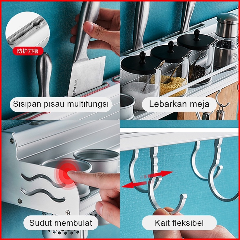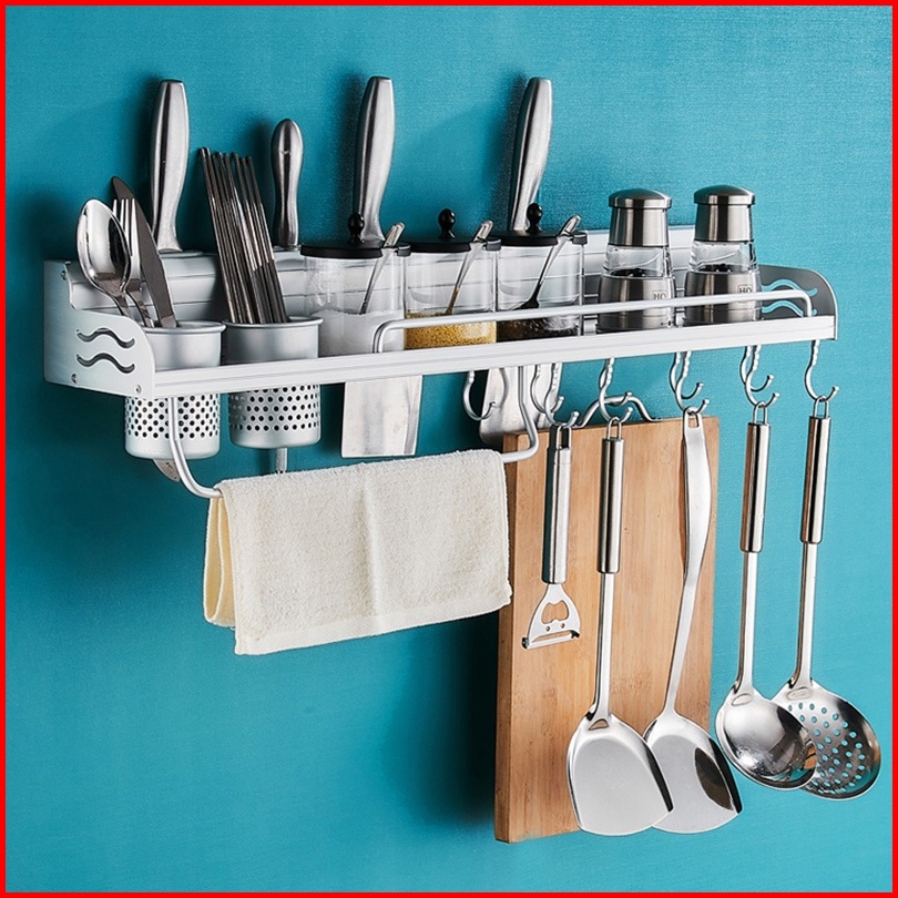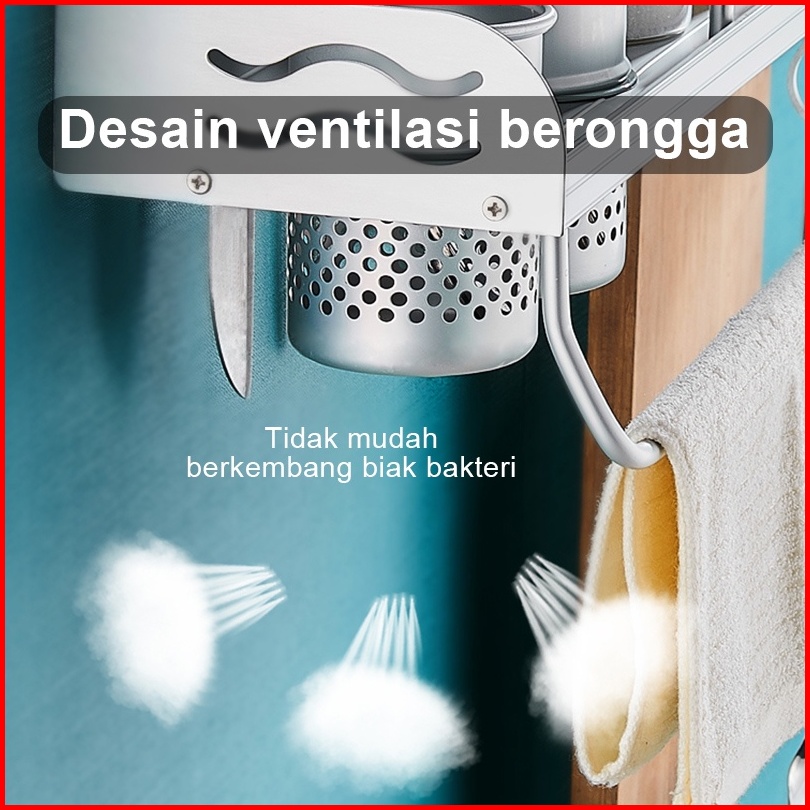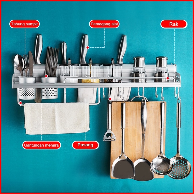 Rak Dinding Dapur Aluminium Stainless Gantung Serbaguna Rak Dapur Bumbu Lengkap Gantungan Pisau Sumpit Sendok Garpu Kain