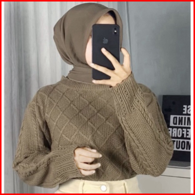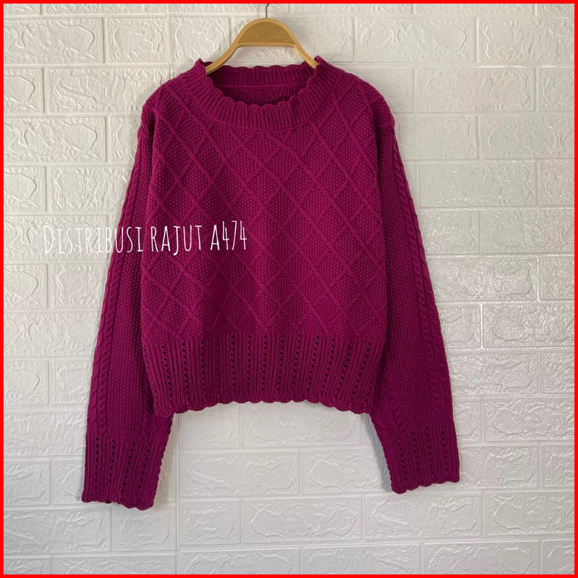 Ruby Crop Sweater Rajut Jaring Motif Renda Blouse Cable Wanita Korea