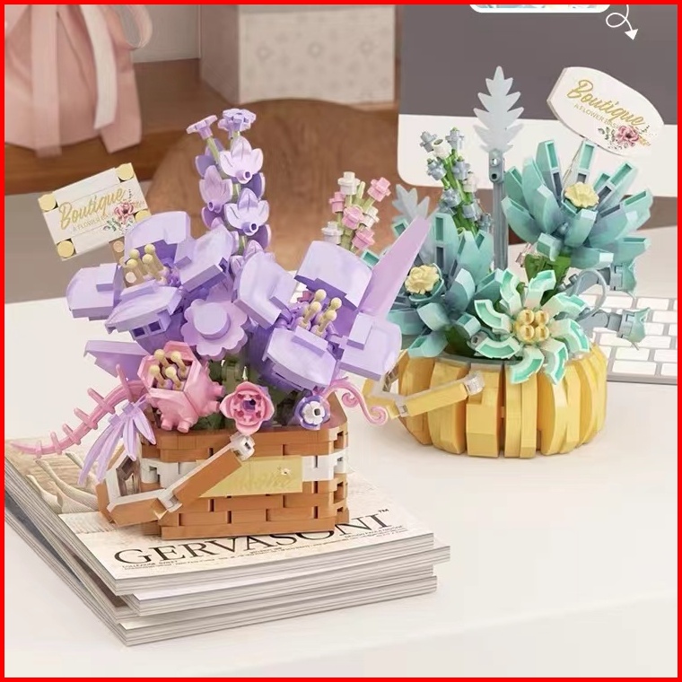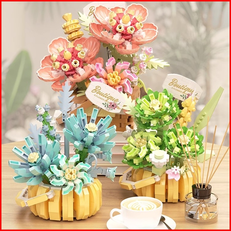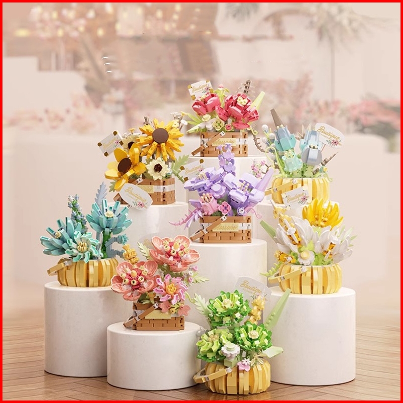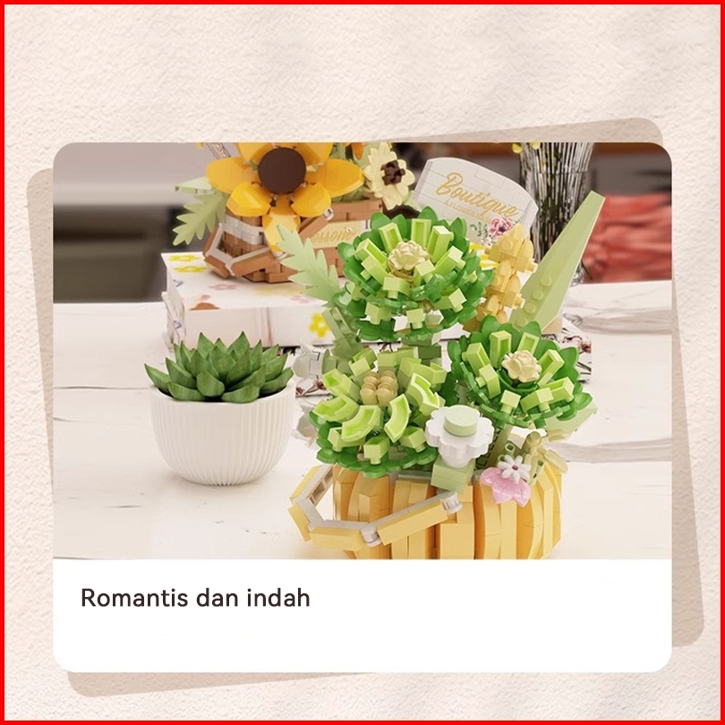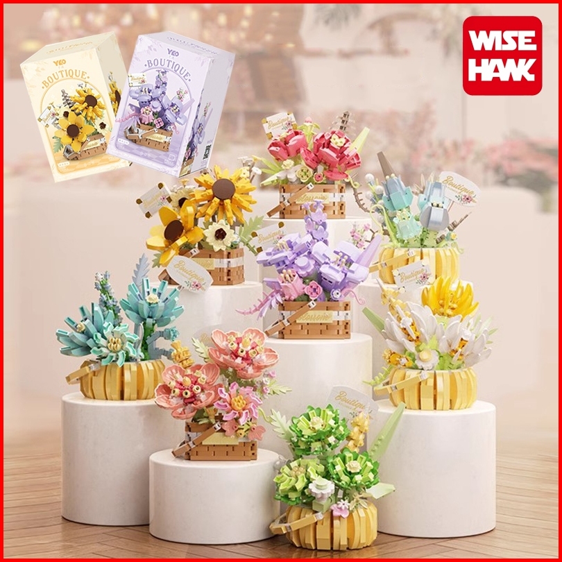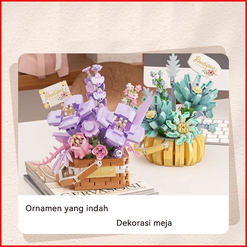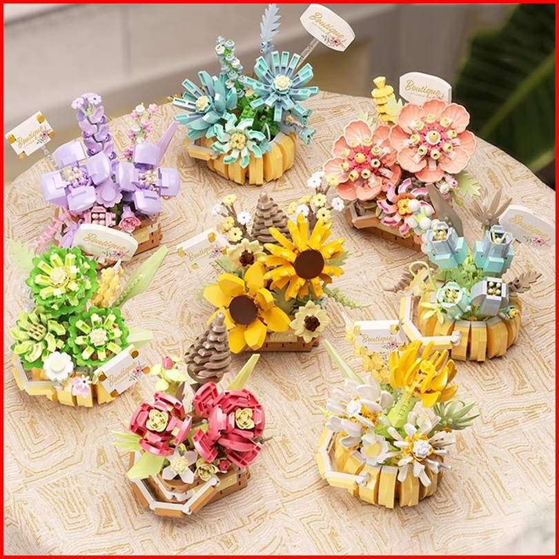 Wisehawk Mainan Brick Bunga Plant Diy Flower Bouquet Mainan Balok Pot Tanaman Mainan Anak Perempuan Hadiah