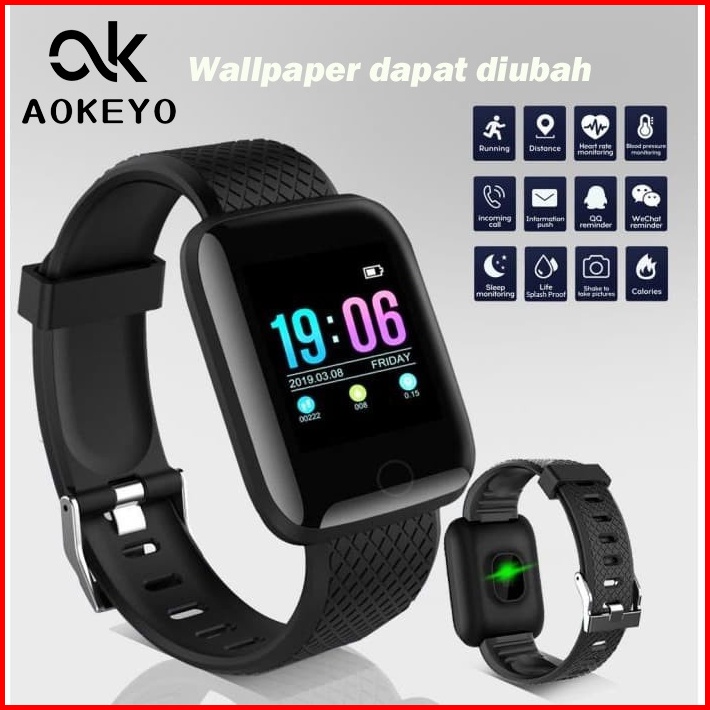 Aokeyo 116 Plus Smartwatch Bluetooth Smartband Fitness Tracker Colour Display Heartrate Waterproof Jam Tangan Pria Wanit