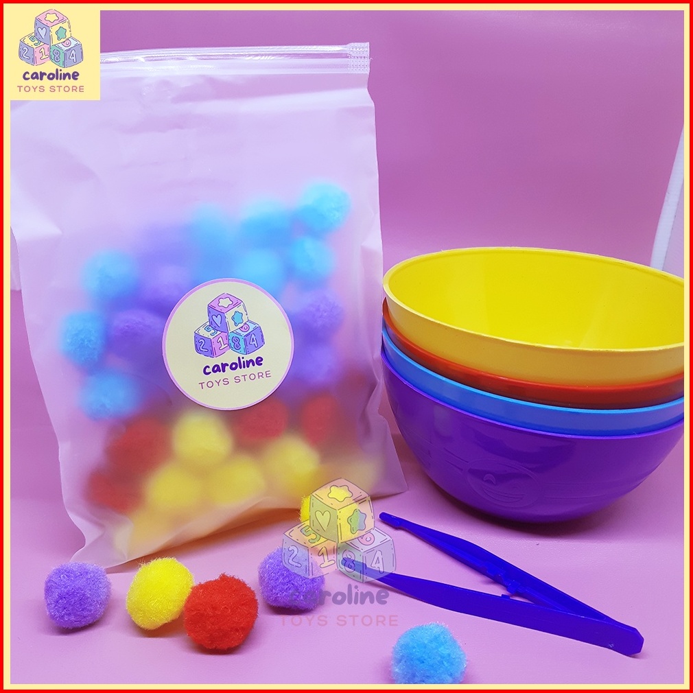 Mainan Edukasi Anak Sorting Color Montessori Capit Pompom Memasukan Kancing