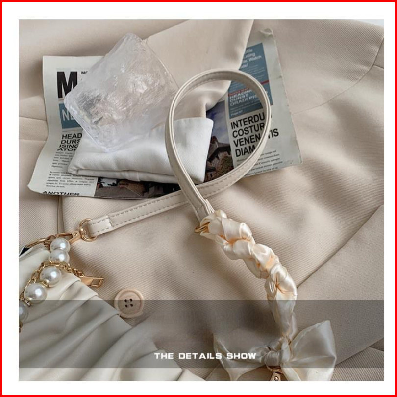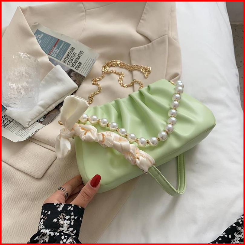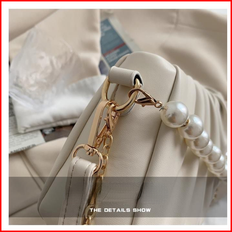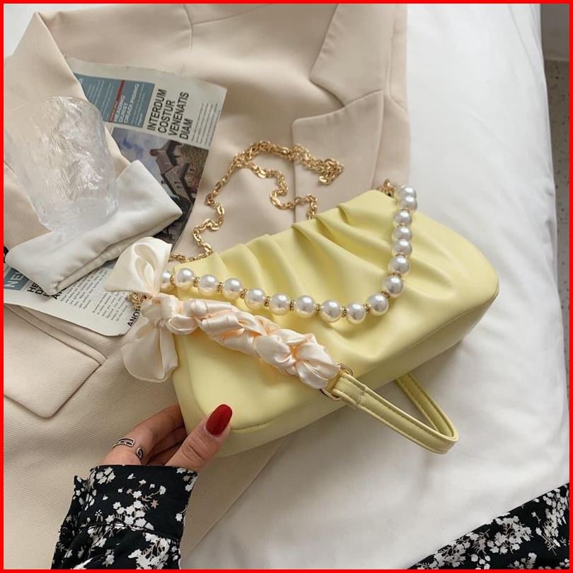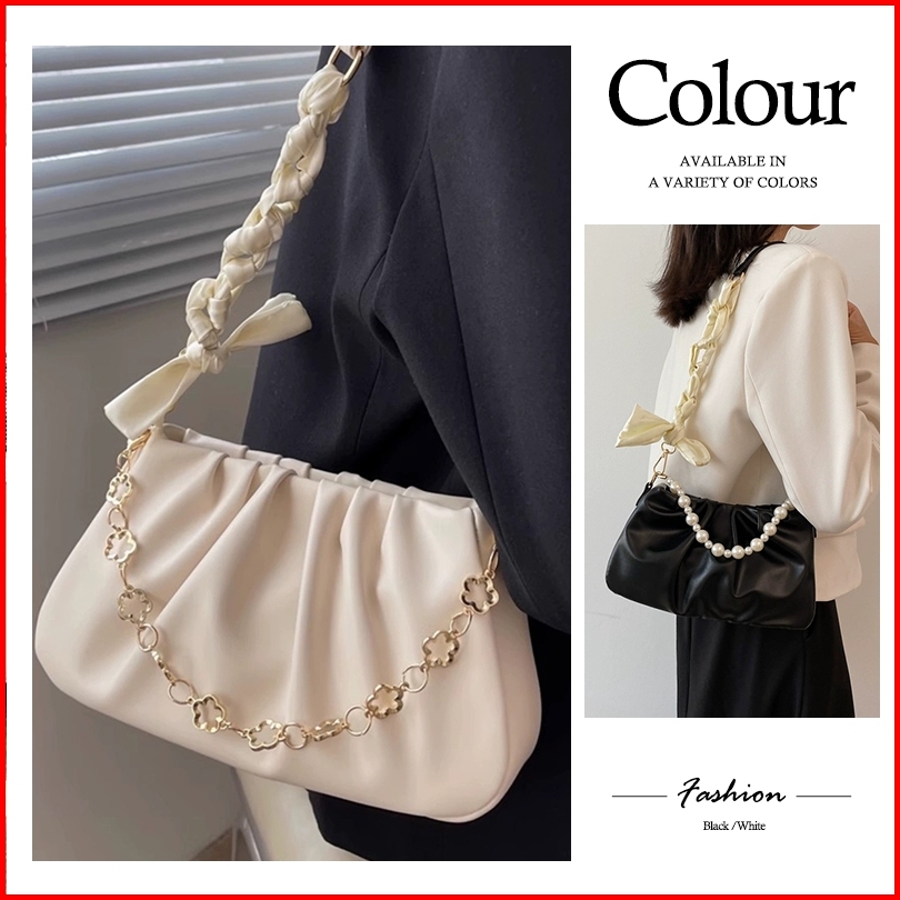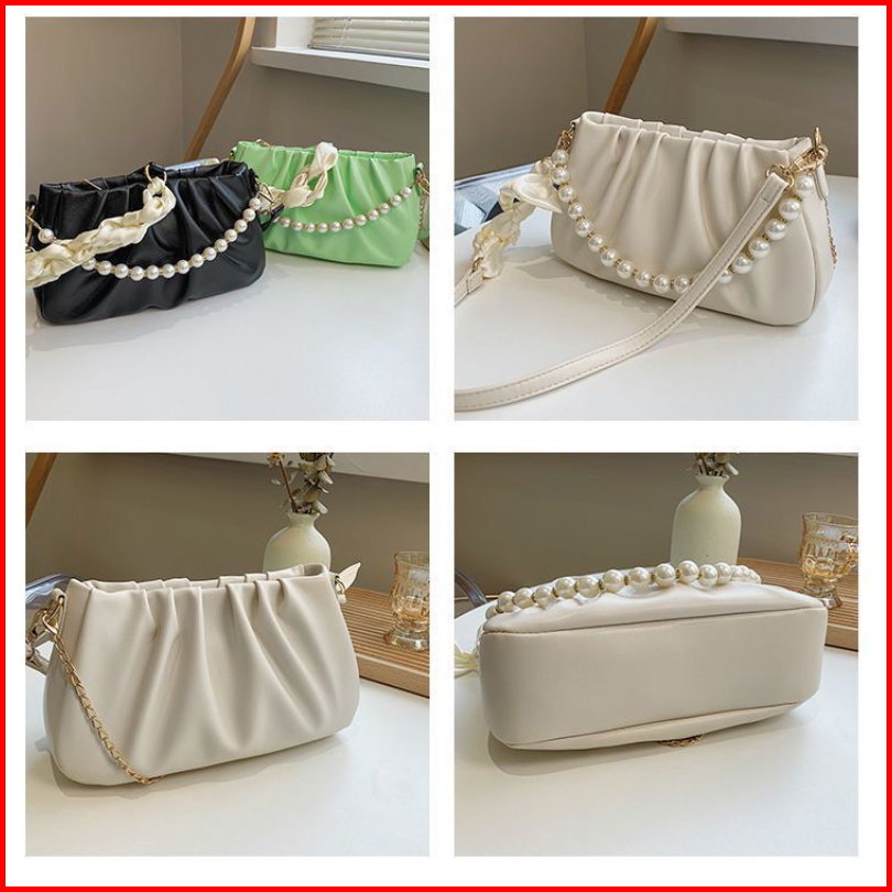 Ready Codhot Selling Tas Ketiak Wanita Lipit Mutiara Lipit Tas Bahu Tas Rantai Mode Baru Handle Bag Korea 2023