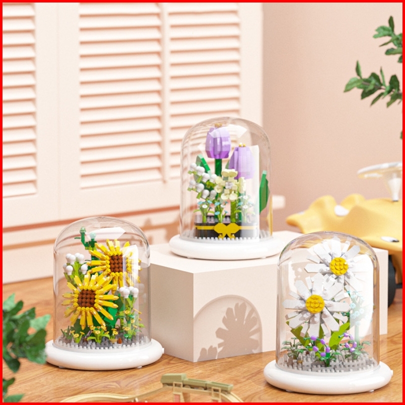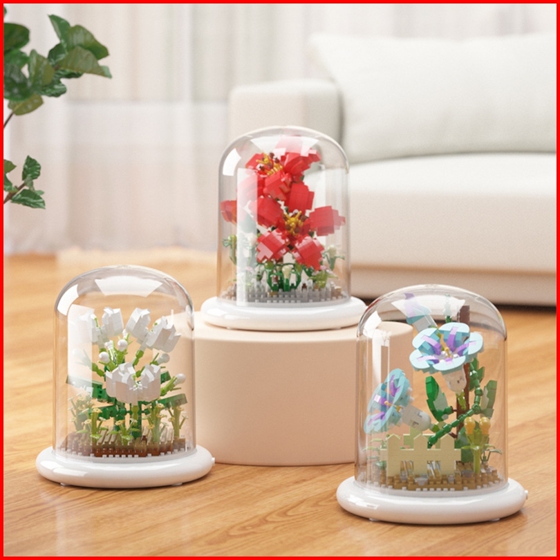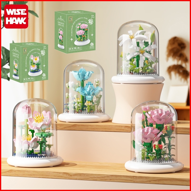 Wisehawk Bunga Blok Bangunan Nano Tidak Pernah Pudar Hadiah Ulang Tahun Gadis Penutup Plastik Tulip Diy