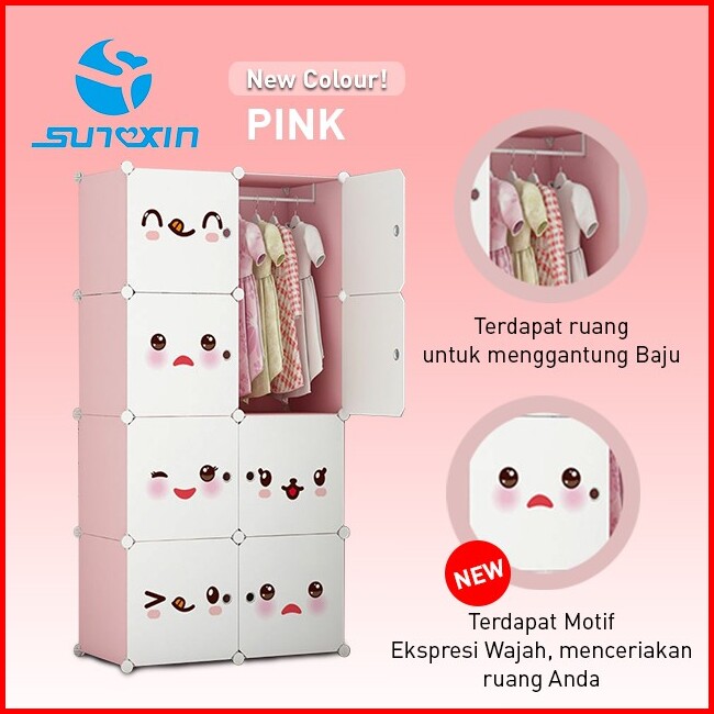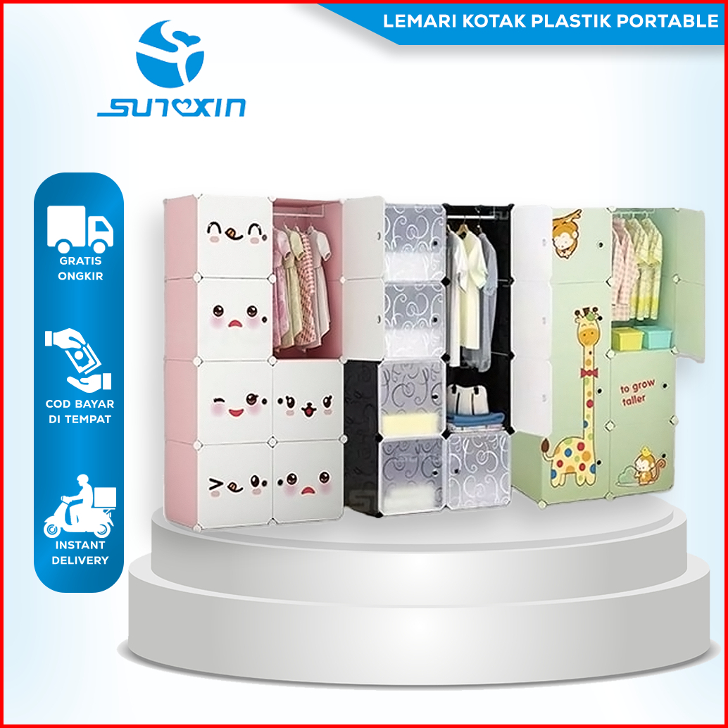 Sunxin - Lemari Kotak Plastik Portable Bongkar Pasang Rak Serbaguna