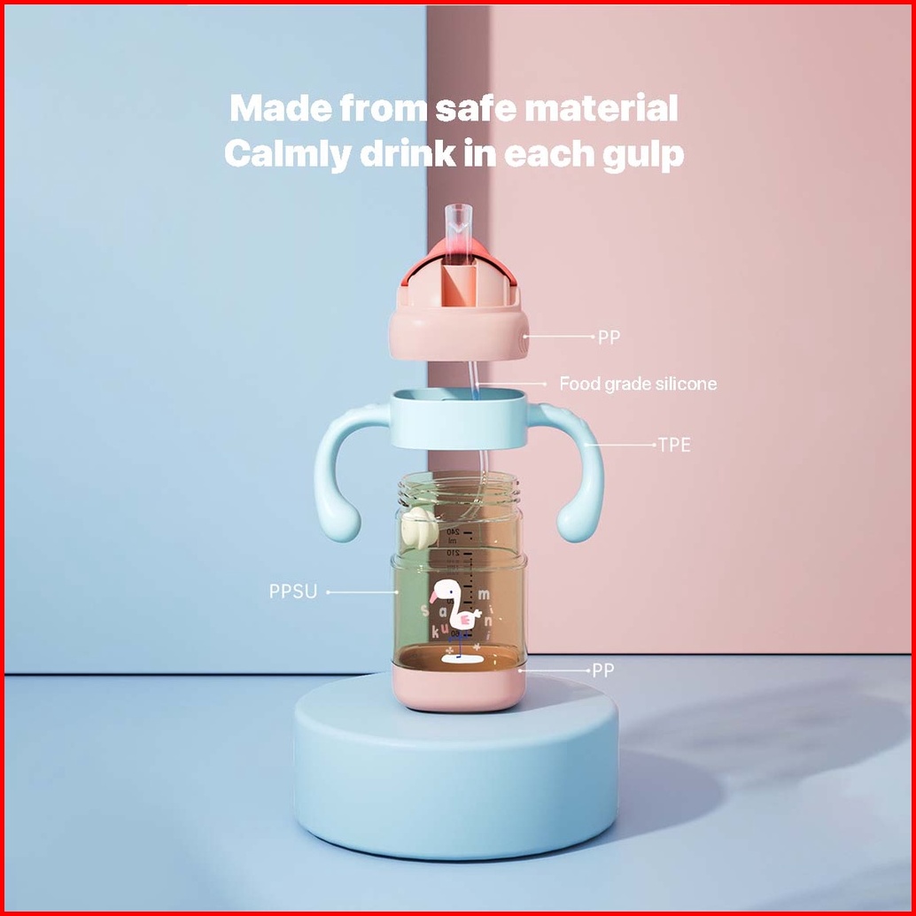 Sakumini Baby Botol Minum Sedotan Training Ppsu 240ml Straw Cup