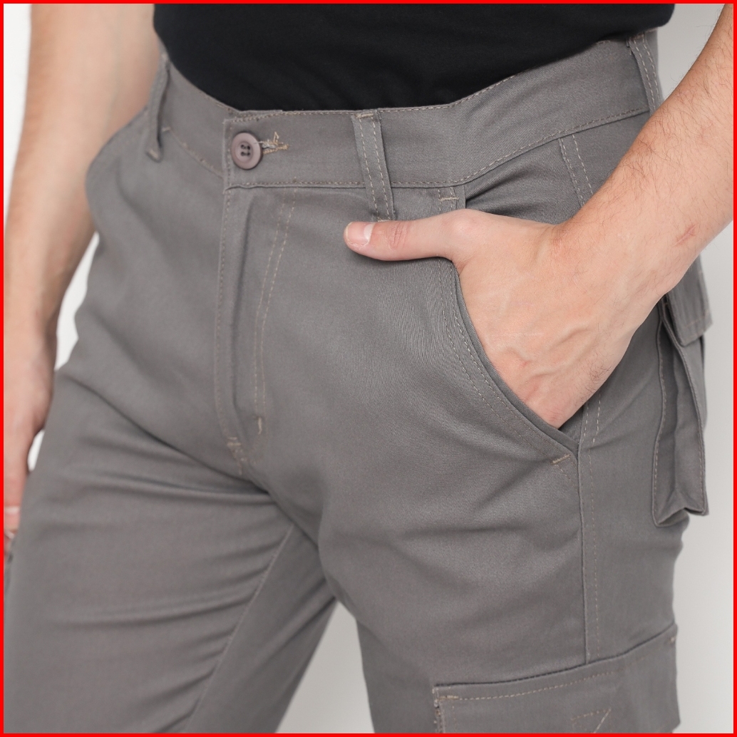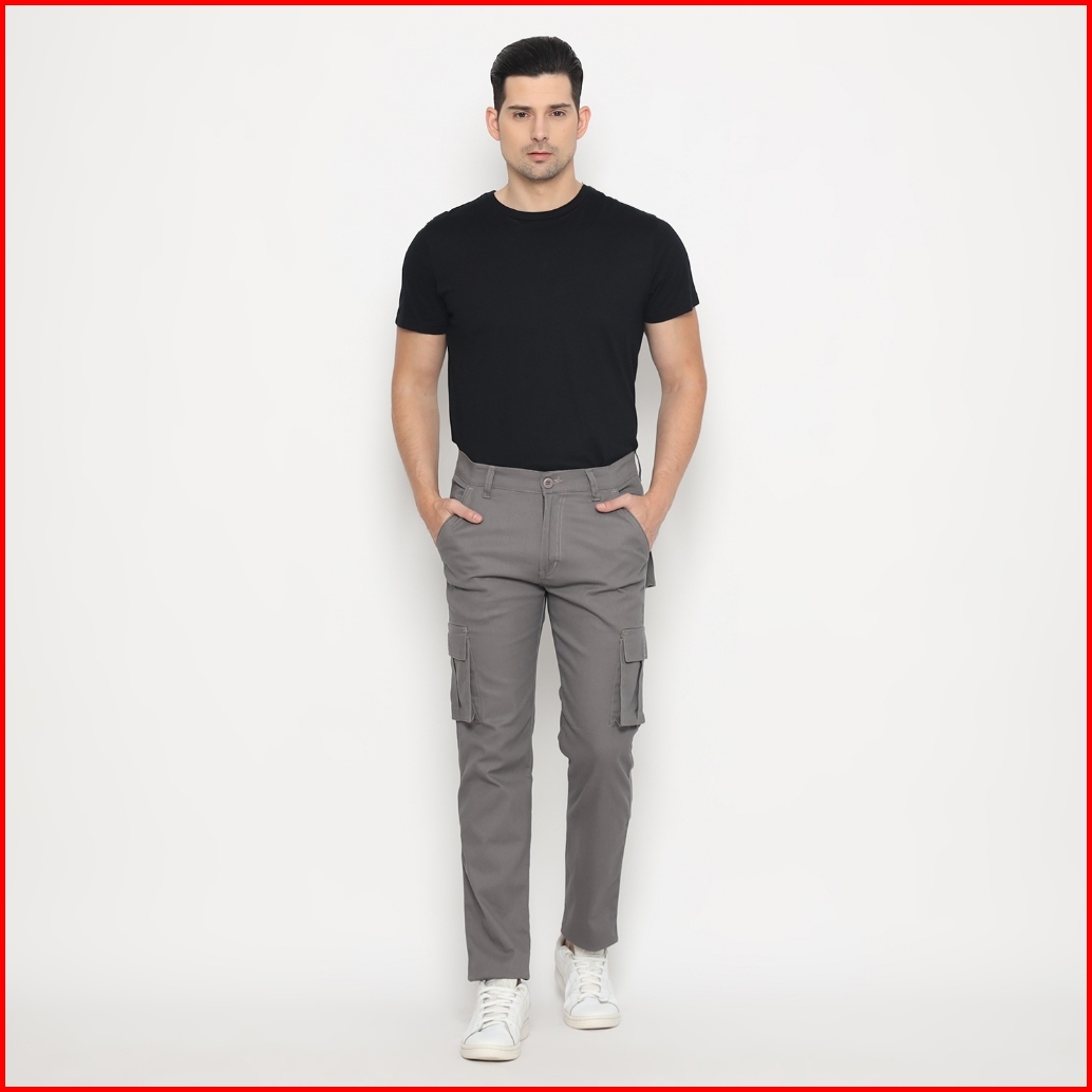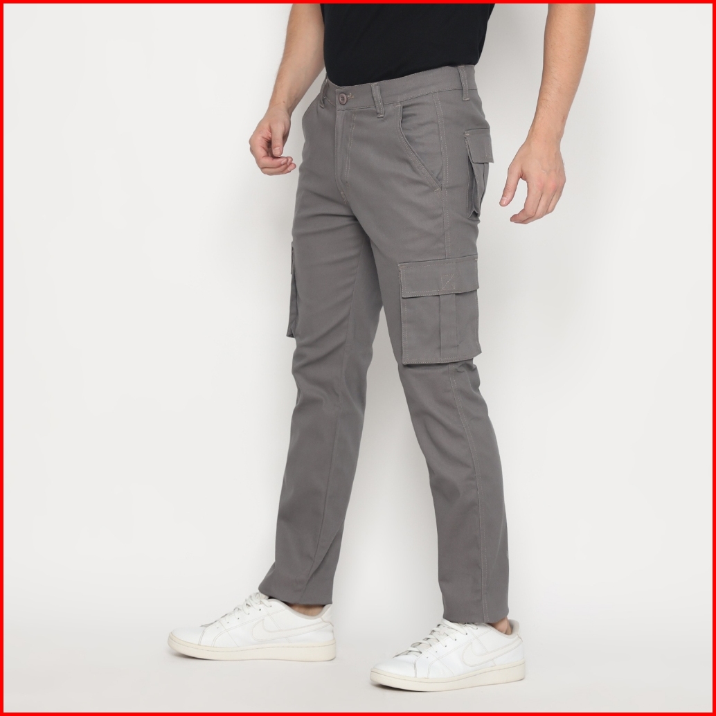 Fichino Cargo Pants Pria Celana Cargo Panjang Pria Denver Series Warna Dark Grey
