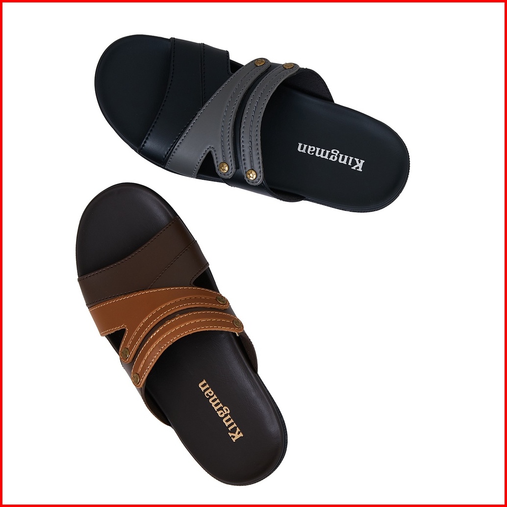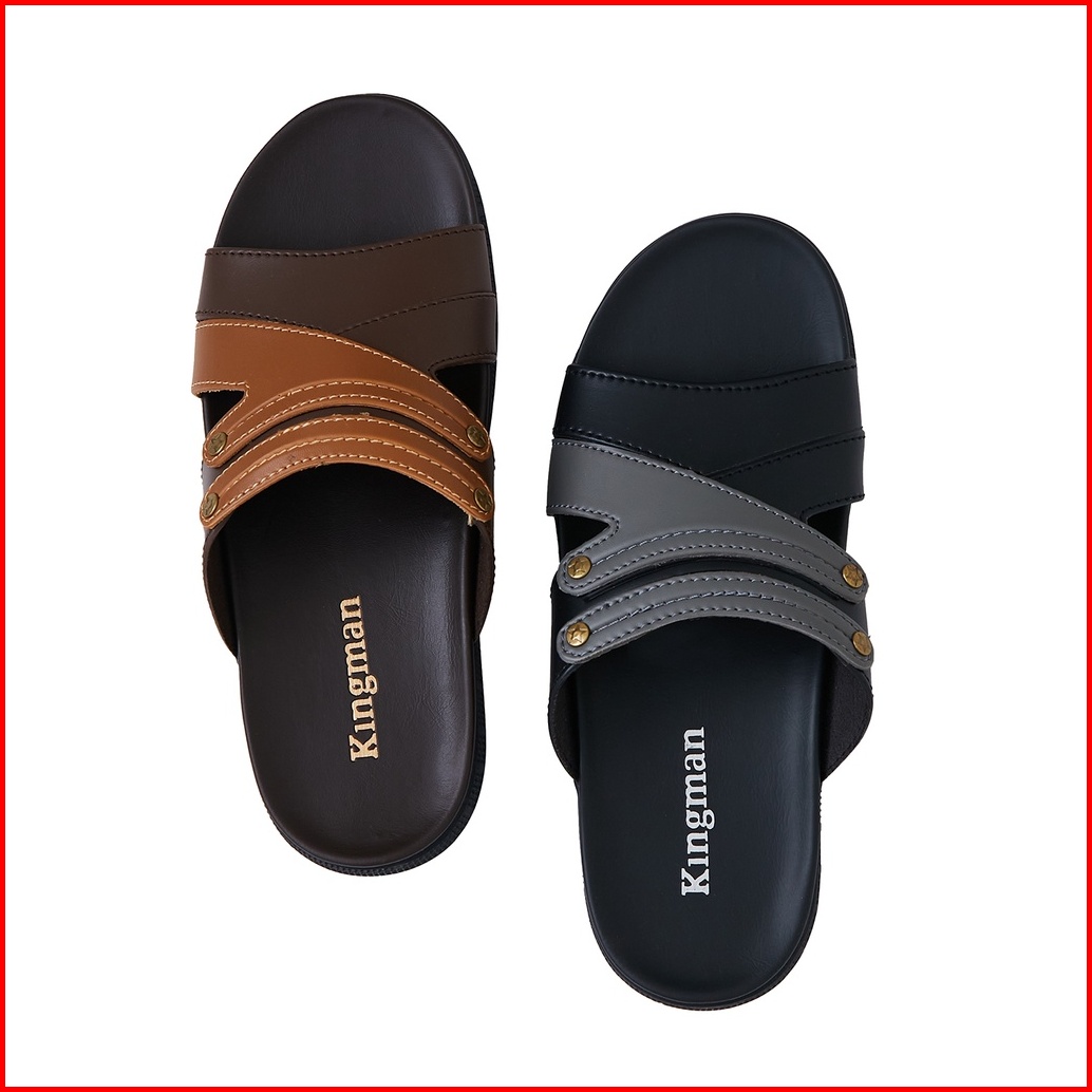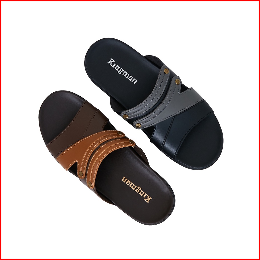 Kgmn Sandal Pria Stylish Stockton Sendal Cowok Casual Kekinian Kulit Kualitas Import - Sc300