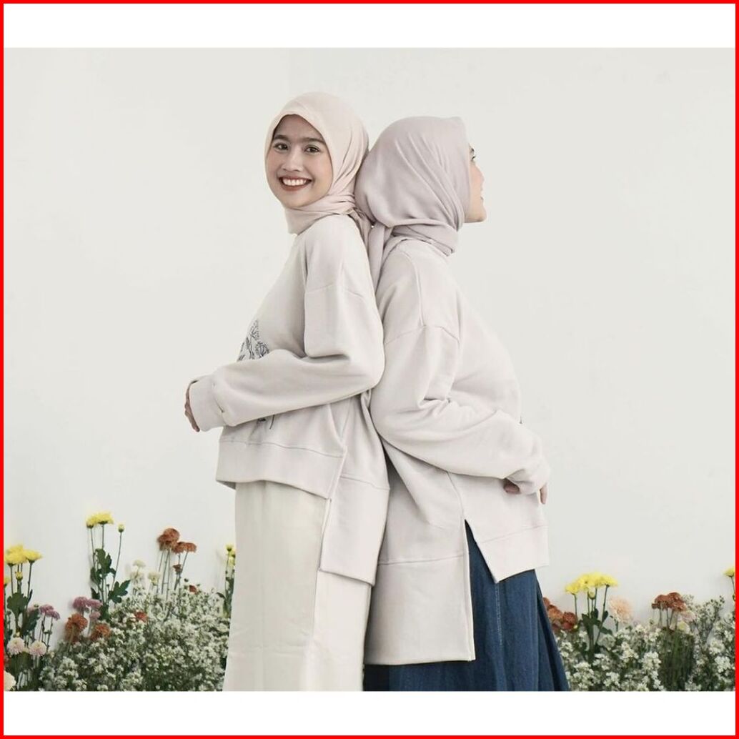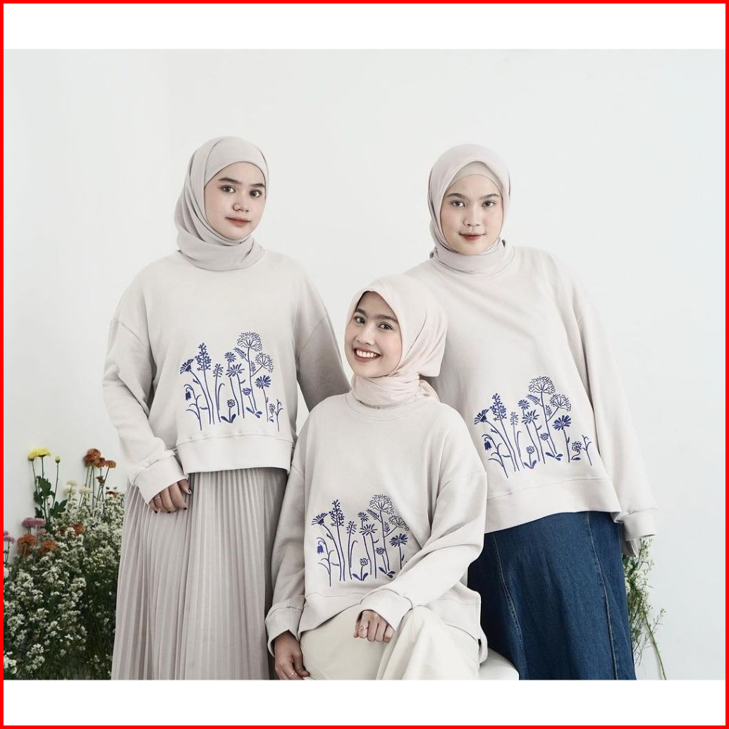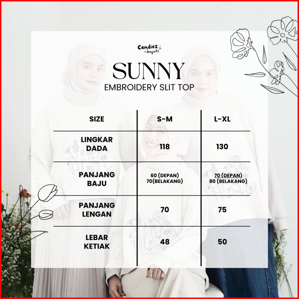 Candiez Sunny Embroidery Slit Top Sweater Slit Tebal Lembut Fleece Embroidery Bordir Bunga