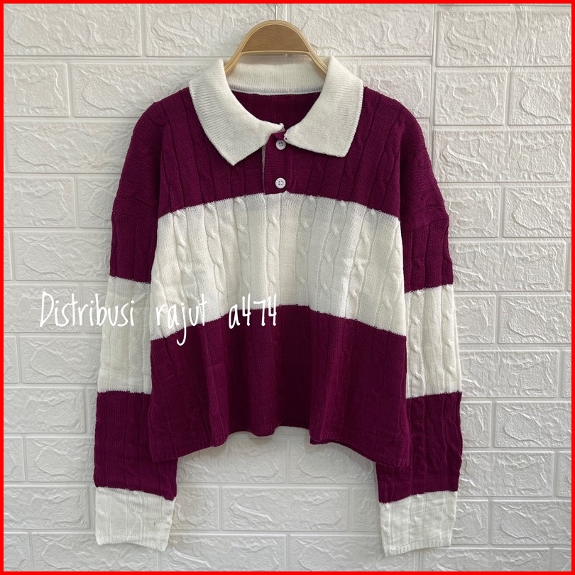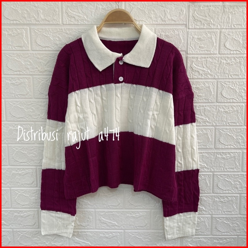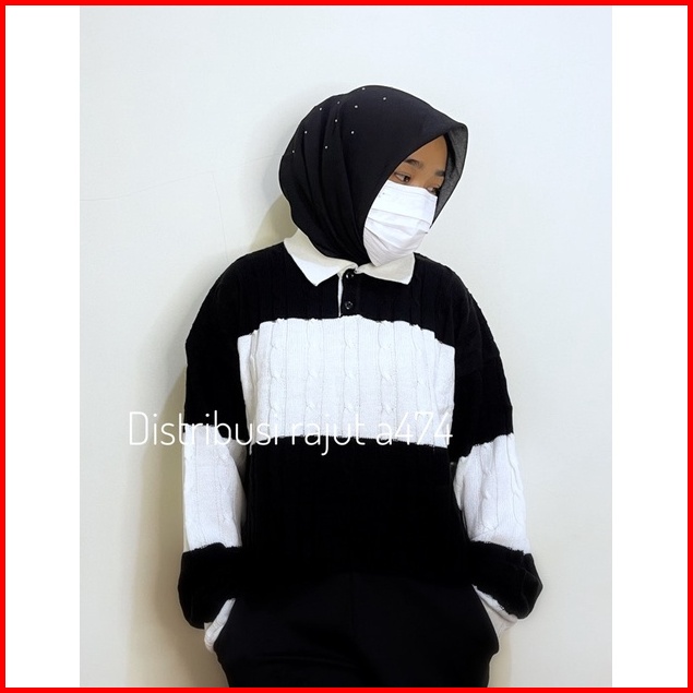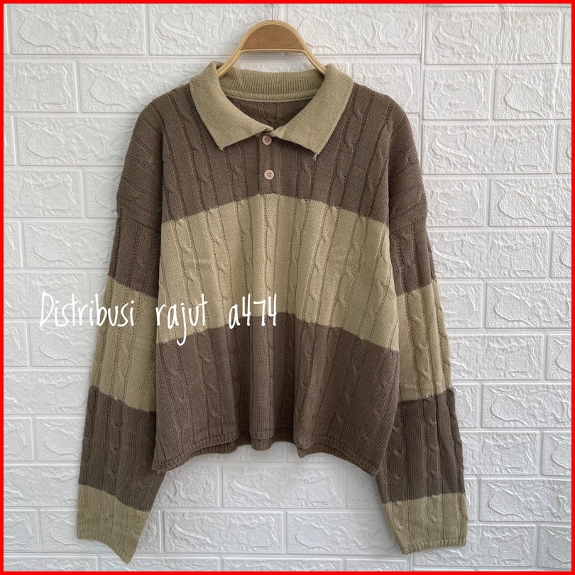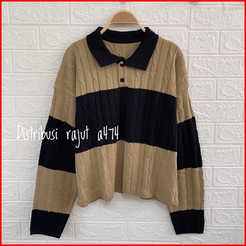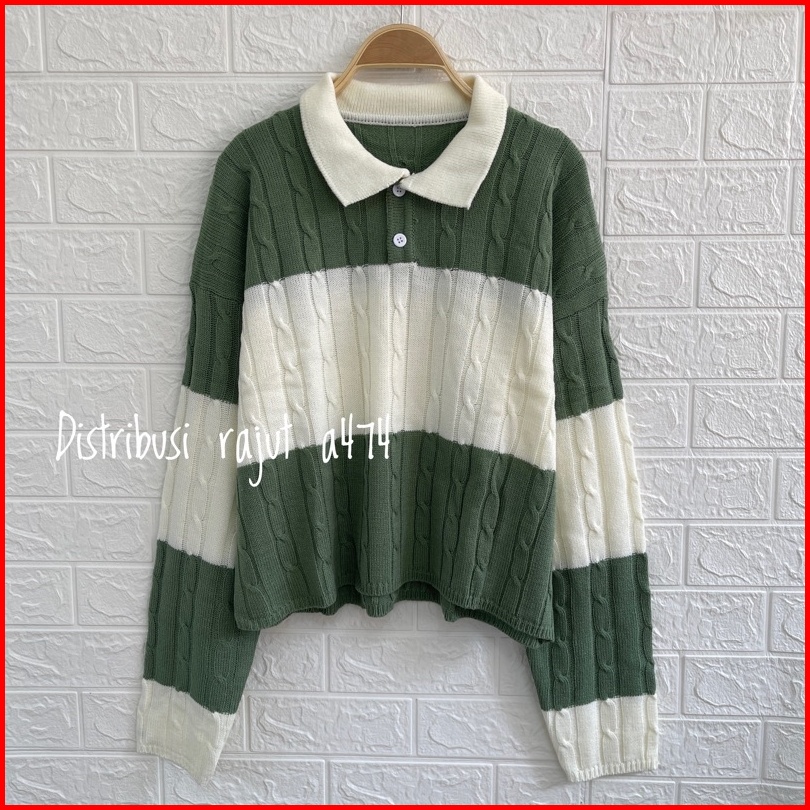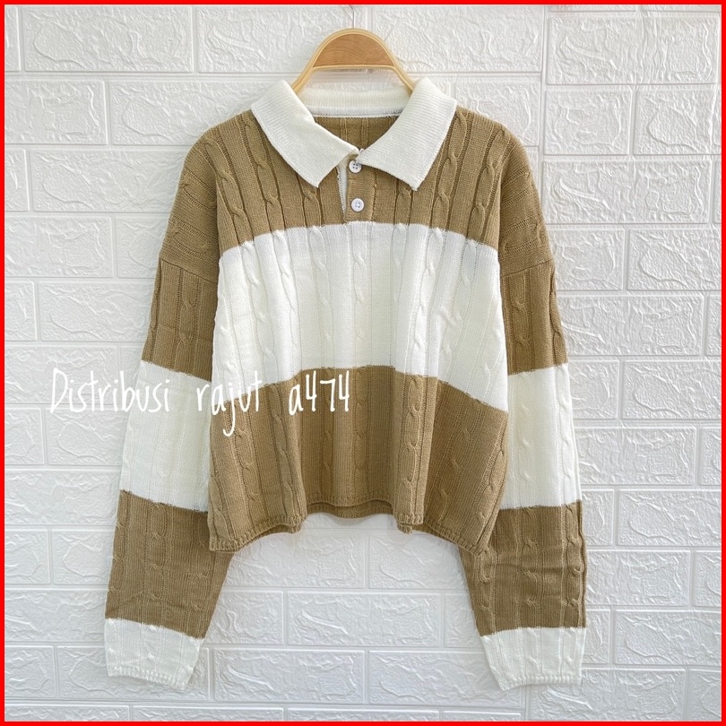 Rahmadhani Polo Atsan Baju Sweater Kerah Crop Top Knits Cable Wanita Korea Tebal Lembut