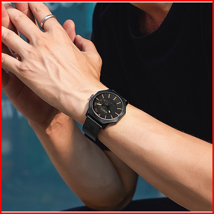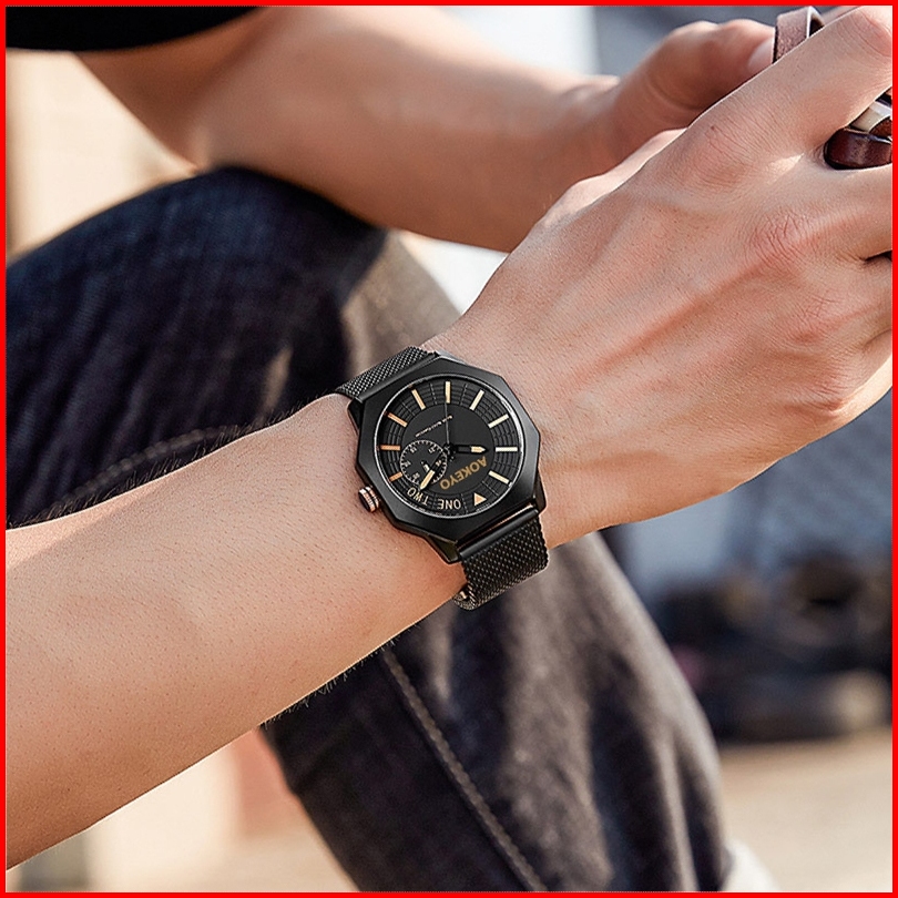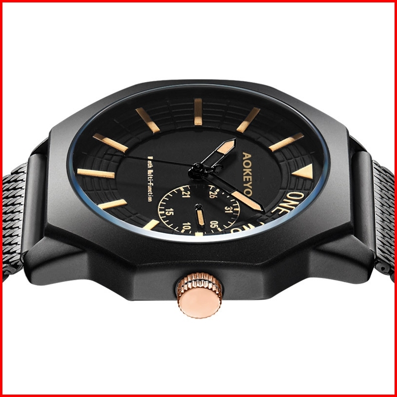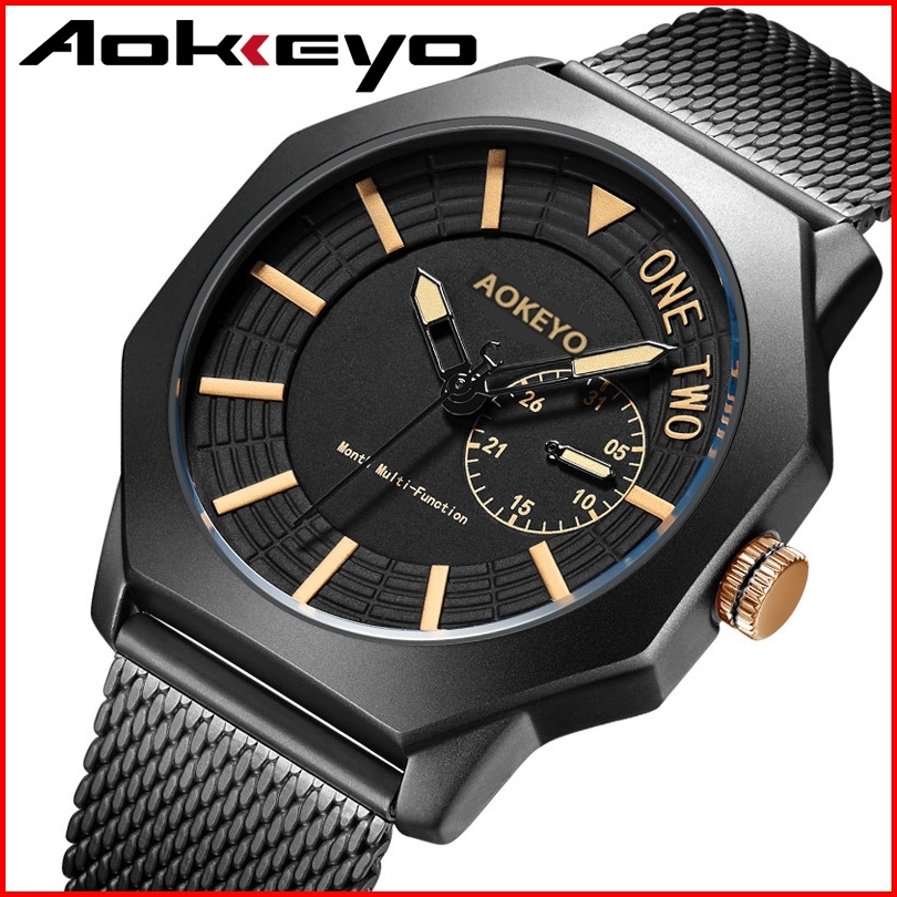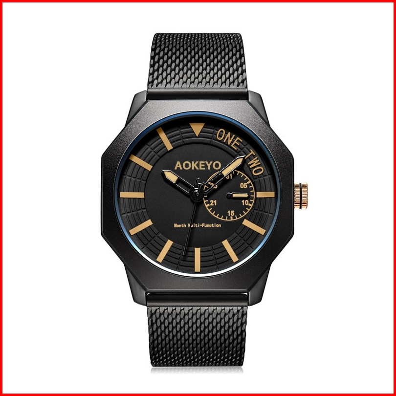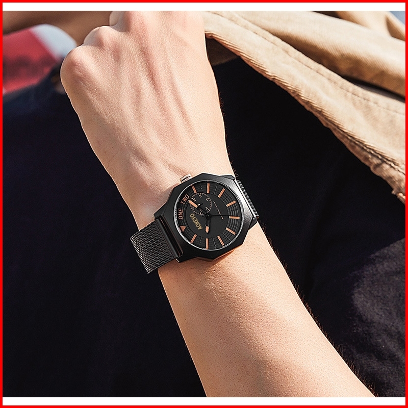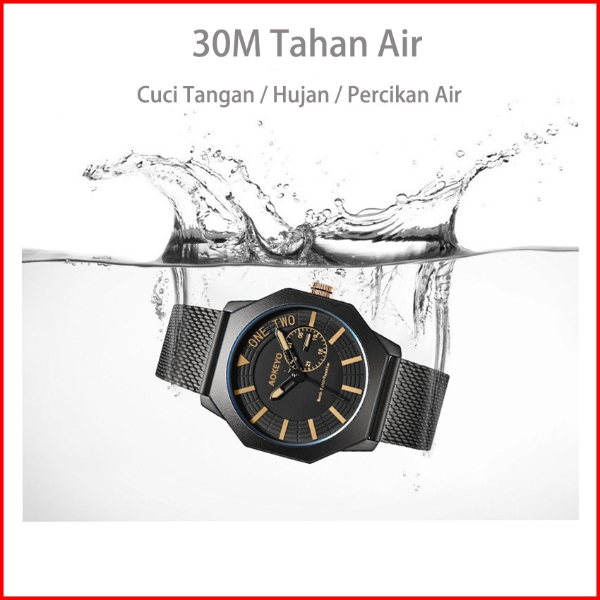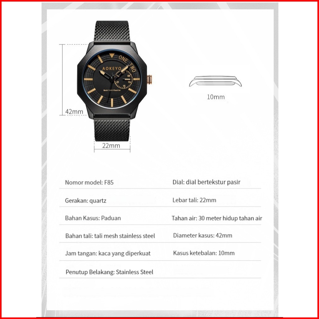 Aokeyo F85 Jam Tangan Pria Original Analog Poligon Anti Air Terbaru Stainless Steel Jam Tangan Cowok Free Box Kartu Gara
