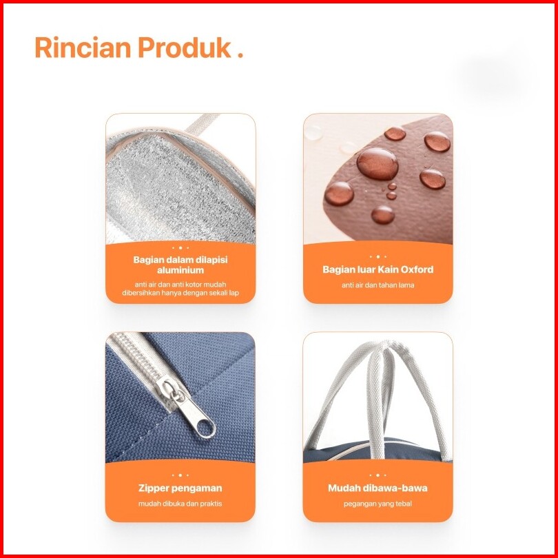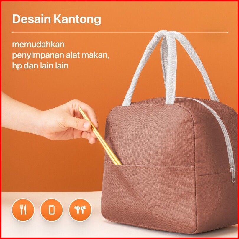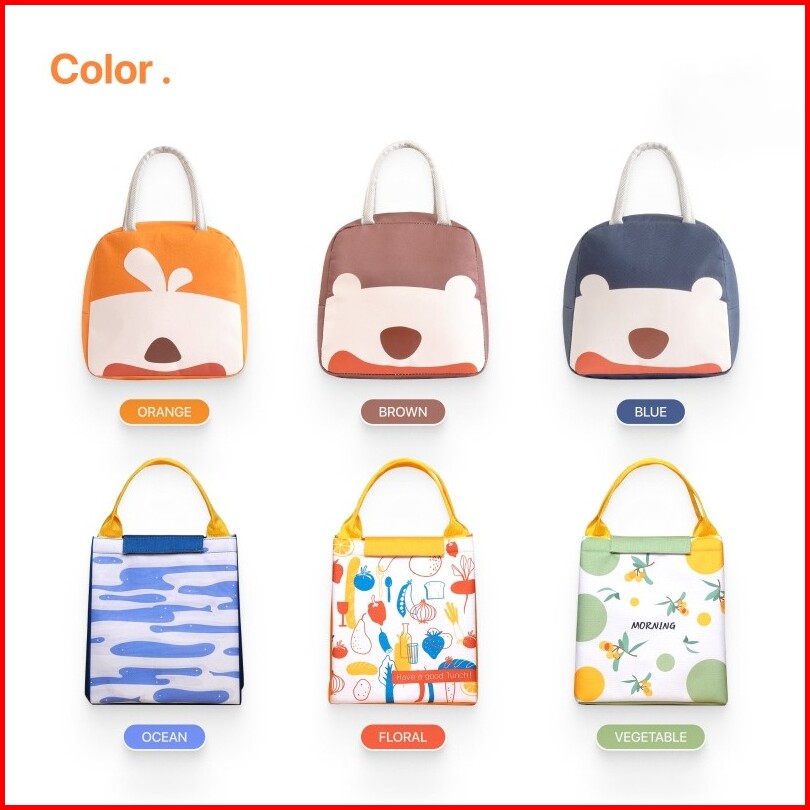 Ohsome - 40000km Lunch Bag Tas Bekal Makanan Thermal Tahan Panas Dingin Blue Brown Orange Vegetable Ocean Floral Sunflow