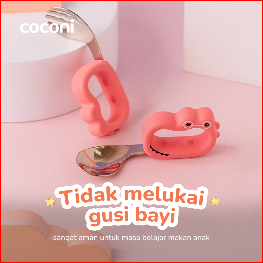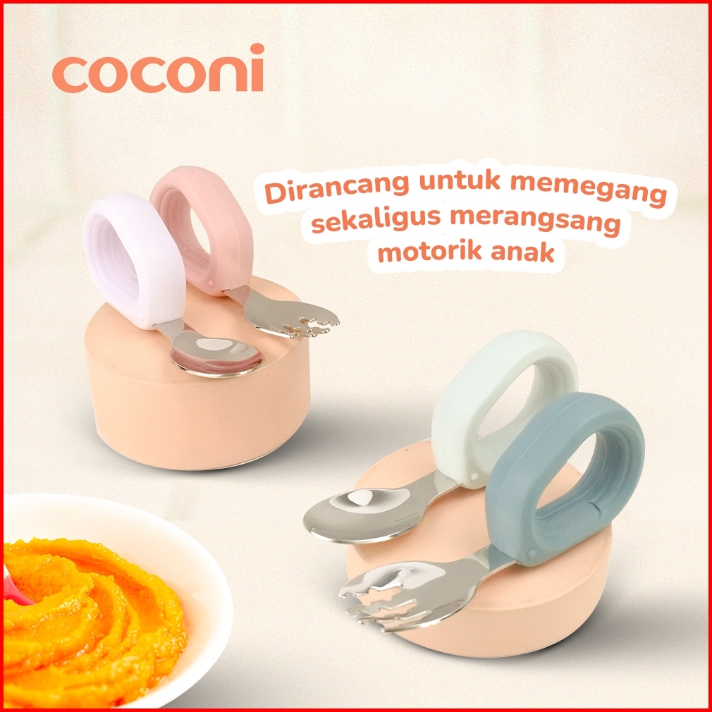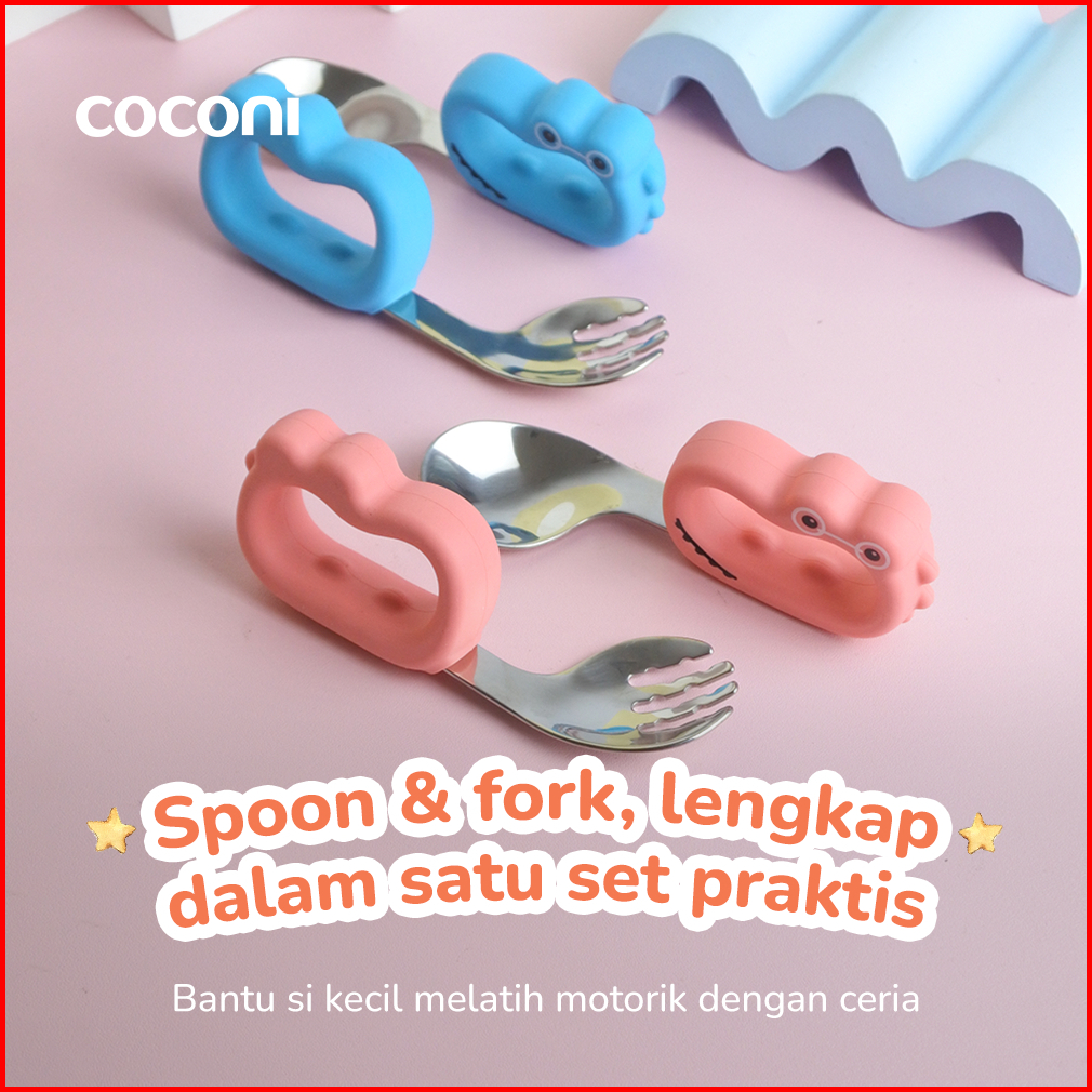 Coconi Eazy Grip Fork Spoon Stainless Steel Set Sendok Garpu Anak Belajar Mpasi