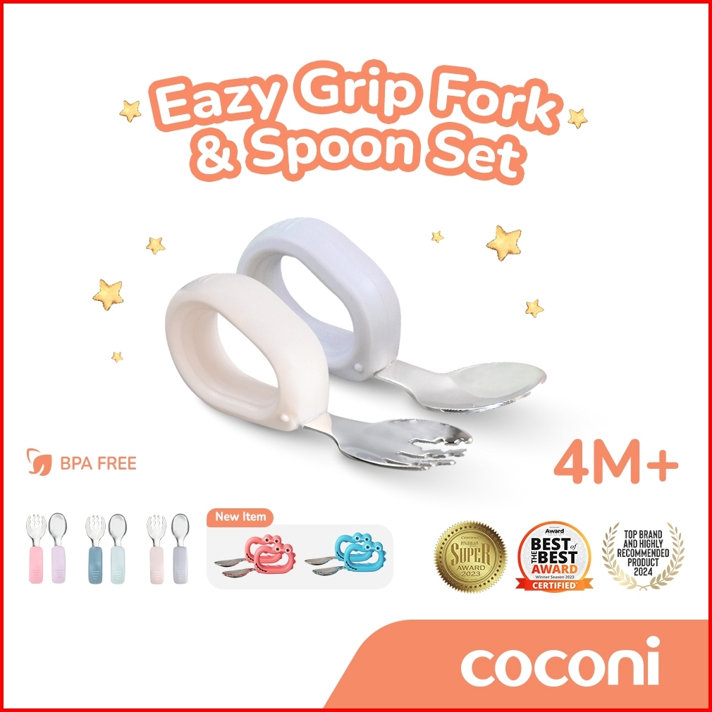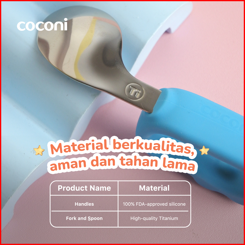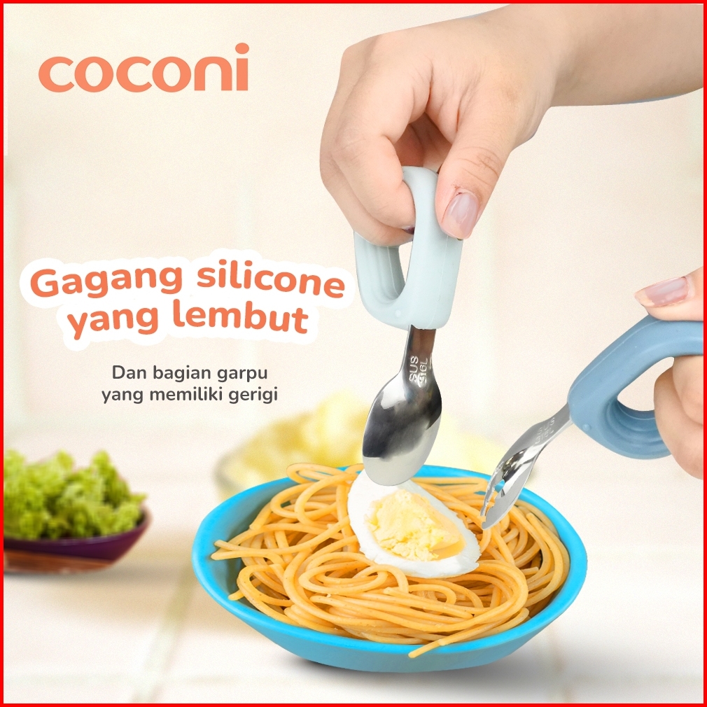 Coconi Eazy Grip Fork Spoon Stainless Steel Set Sendok Garpu Anak Belajar Mpasi