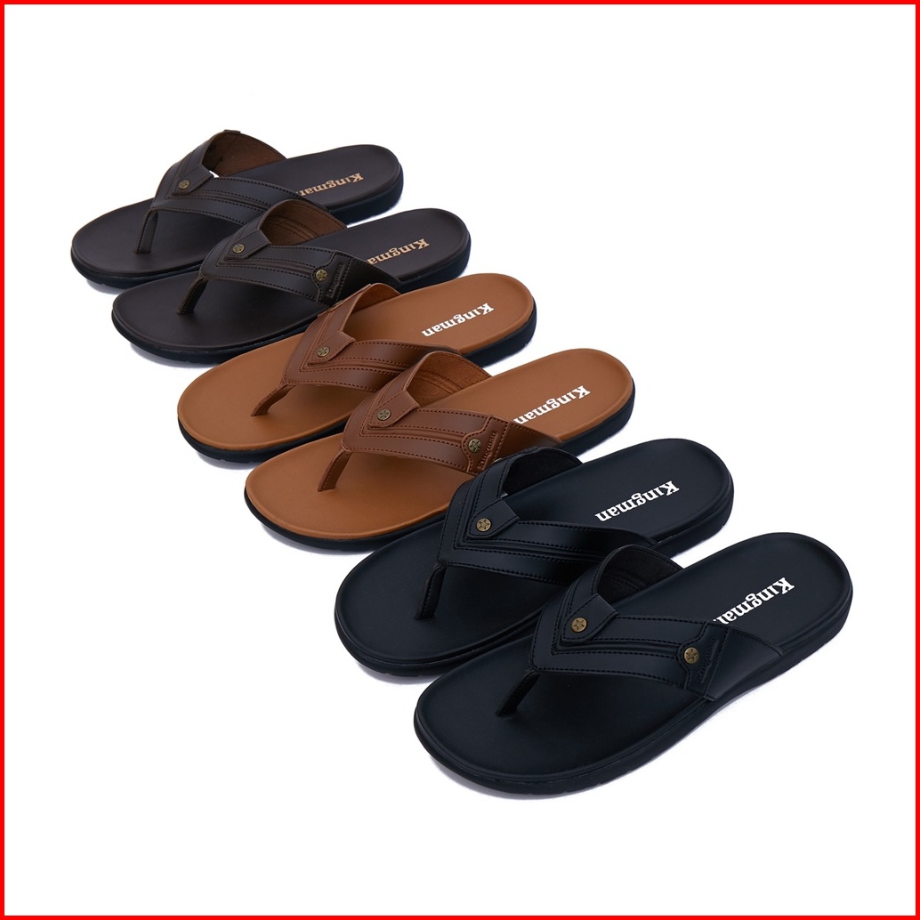 Kingman Sandal Pria Casual Leicester Premium Original Sendal Jepit Kulit Cowok Kualitas Import - Lc100