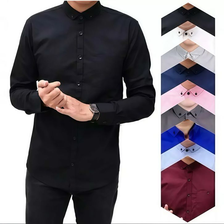 Kemeja Polos Kerja Kantor Formal Lengan Panjang kemeja cowok polos lengan panjang slimfit hem pria kantor hitam navy put