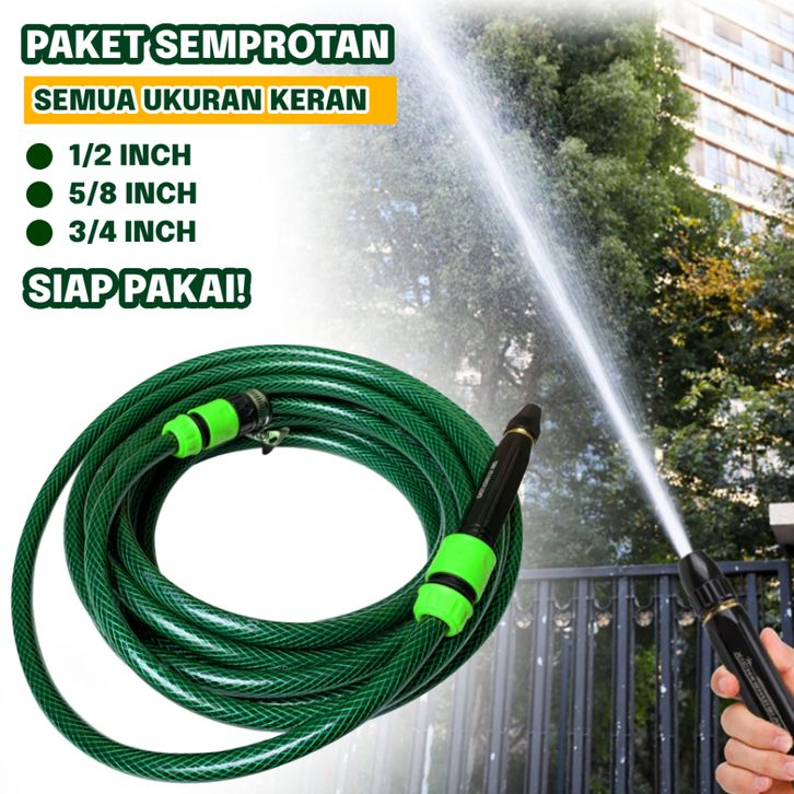 PROMO GEMUK Selang Air Cuci Motor Paketan Dengan Semprotan Air Jet Spray Selang Air 1/2 15 Meter dengan Watergun Lurus A
