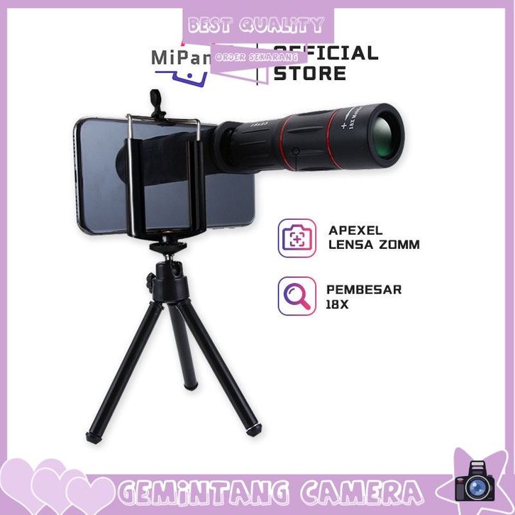 Mipanda APEXEL Lensa Zomm Lens Kamera Tele Zoom HP 18X ZOOM LENSA Universal 18X25 Handphone Bermata HD Ponsel Lensa