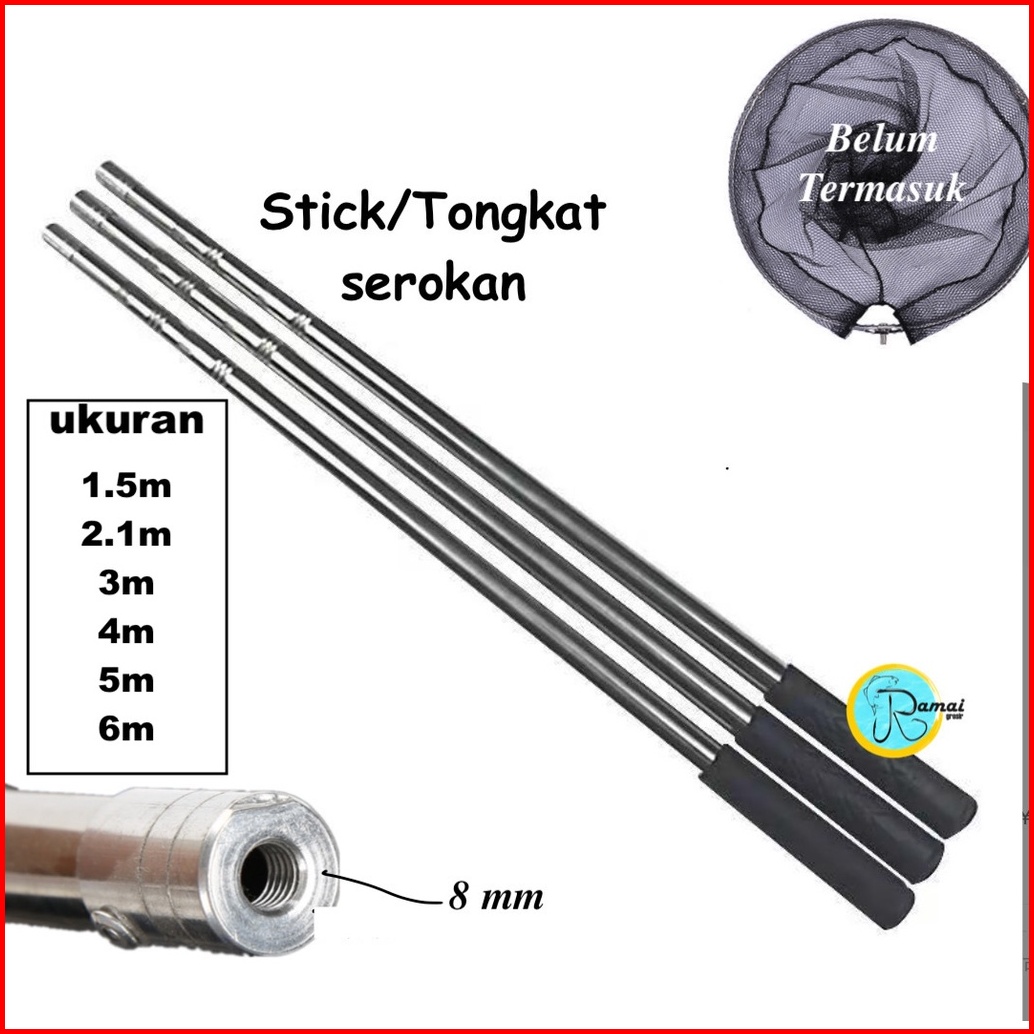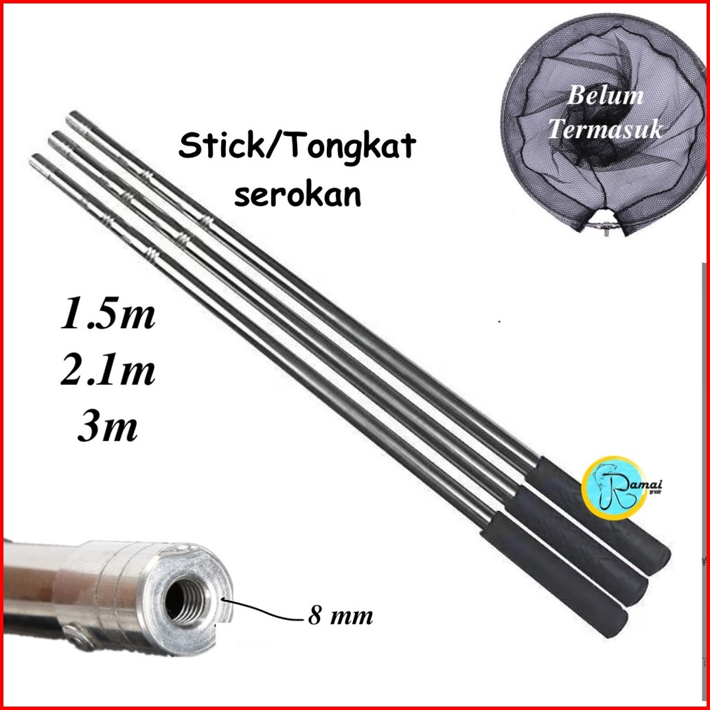 Tanggok Serokan Jala Ikan Jaring Portable Tongkat Jala Stik Serokan Ikan 3 Section Telescopic