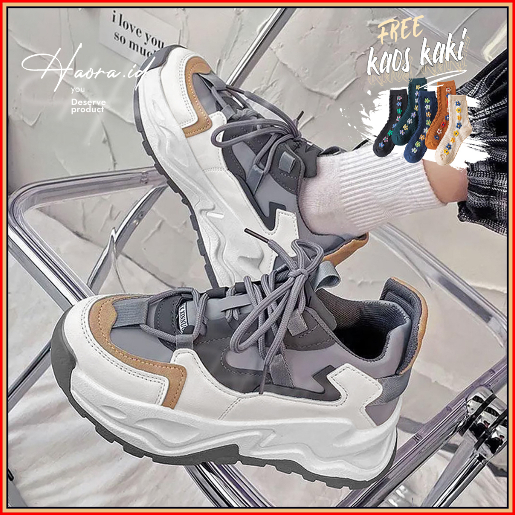 Sepatu Wanita Cewek Korea Kulit Pu Sintesis Woman Sneakers Premium Quality Size 37 Sampai 40 Fre Box Kaos Kaki - Hr07 Ju