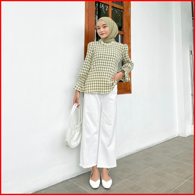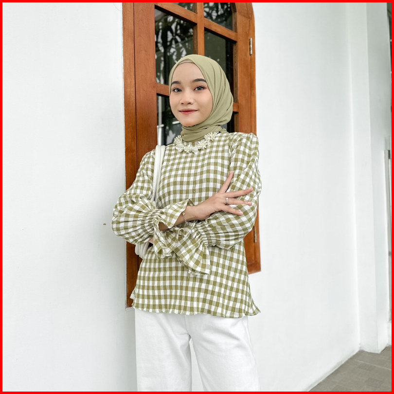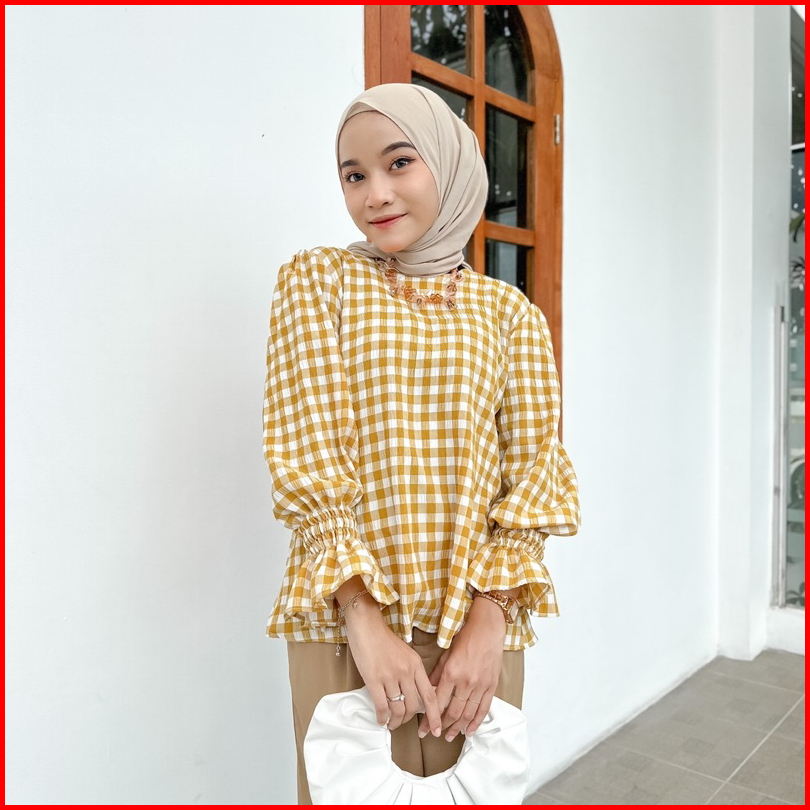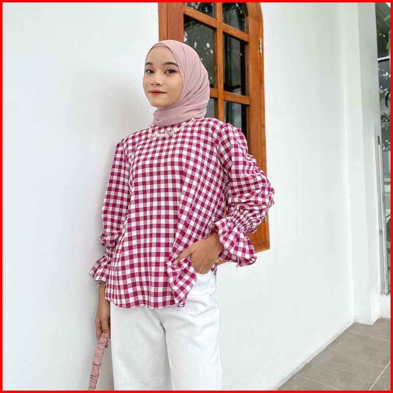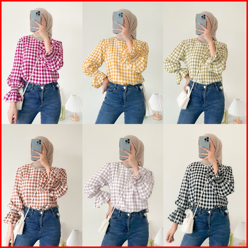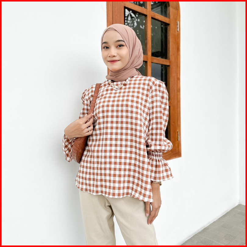 Sara Blouse Kotak-kotak Basic Korean Atasan Terbaru