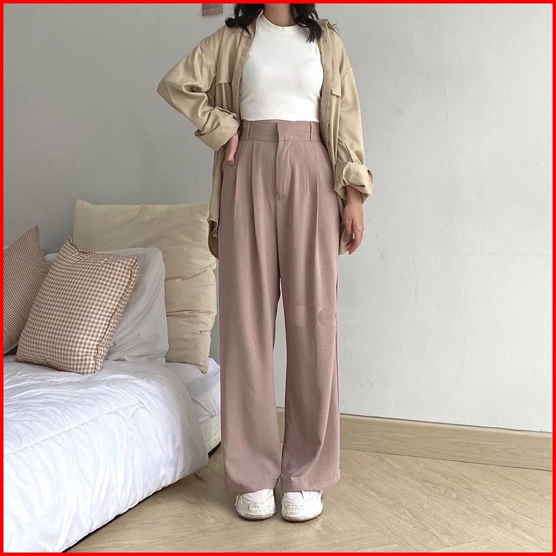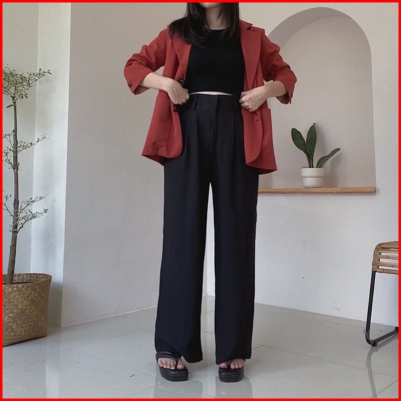 Kulot Loose Pants Trousers Wanita Premium Celana Airflow Trouser Anti Kusut Amora Loose Pants Celana Kulot Crinkle Highw