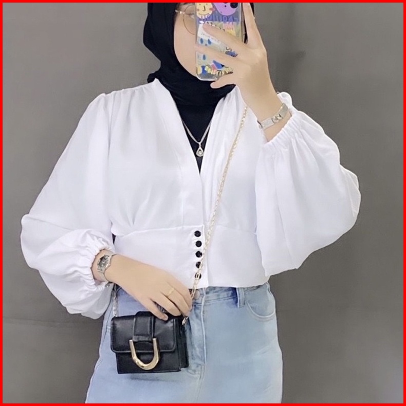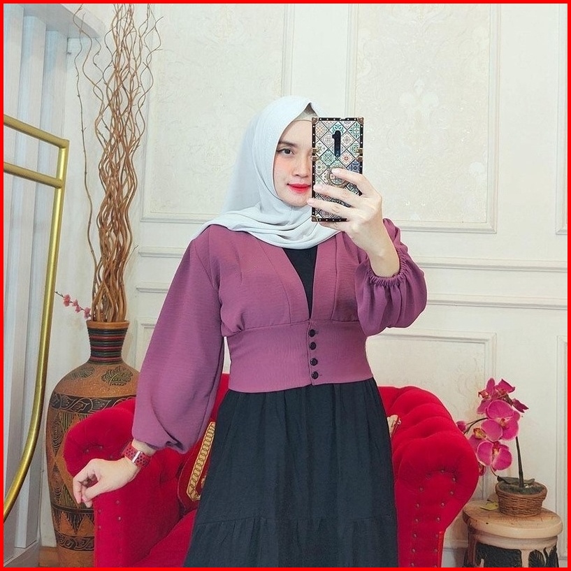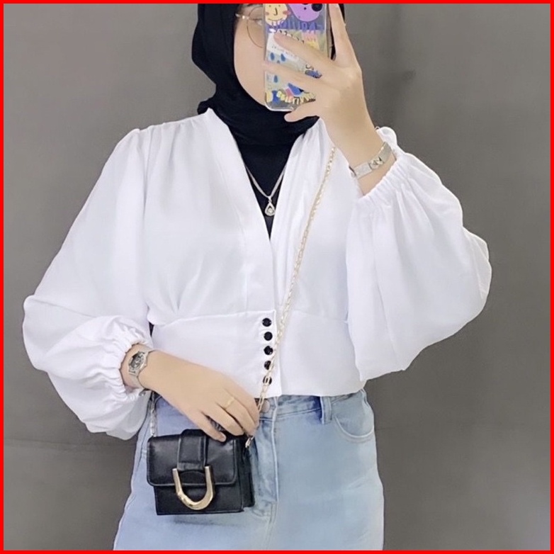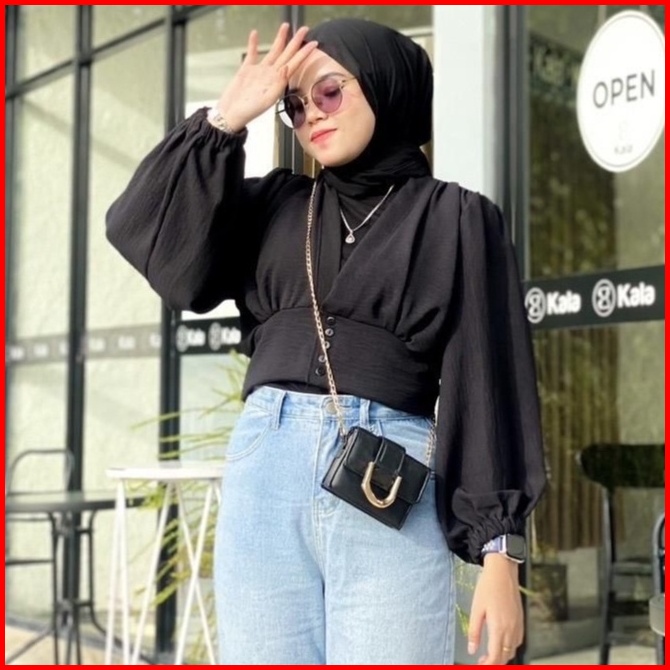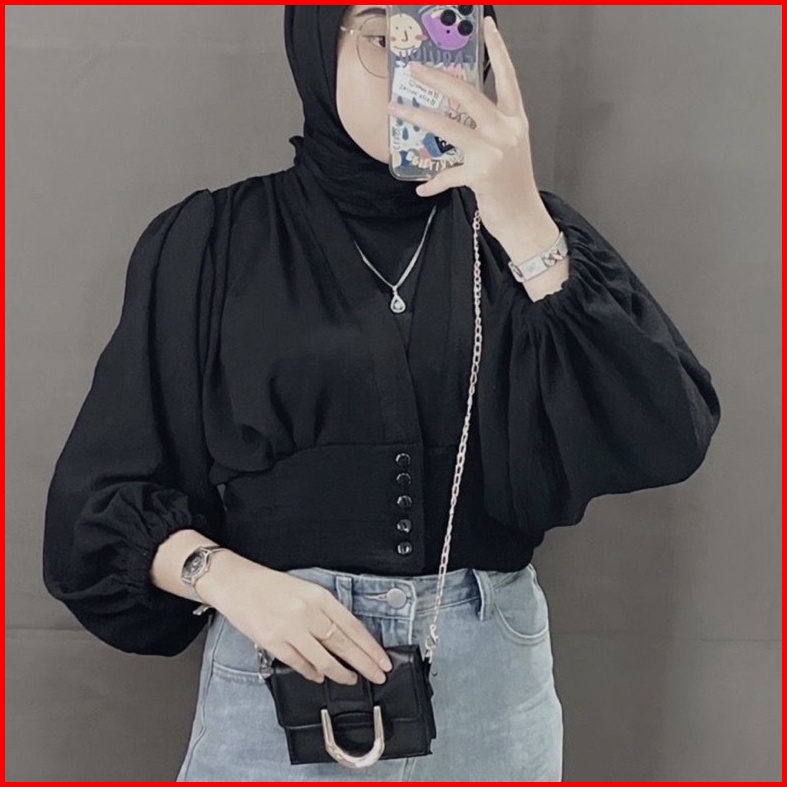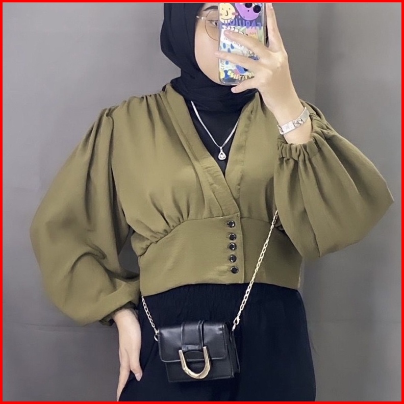 Maurin Top Blouse Crop Outer Blouse Semi Outer Kancing Crinkle