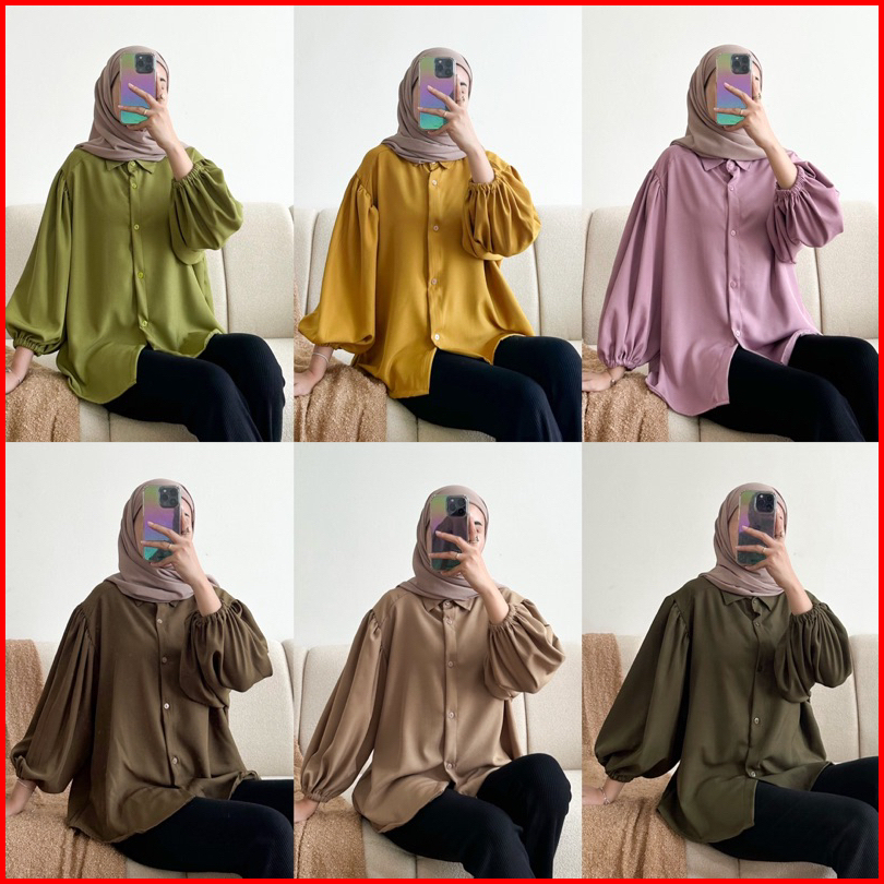 Zea Puffy Blouse Kemeja Shakila Atasan Wanita Polos Lengan Balon