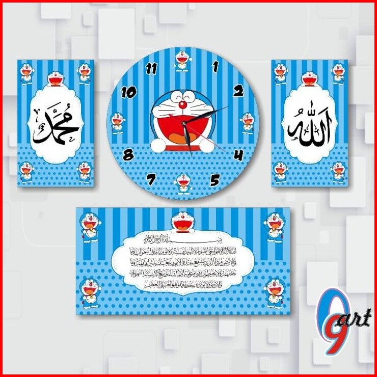 Jam Dinding Kaligrafi 1set Motif Karakter Doraemon Ayat Kursi Allah Muhammad