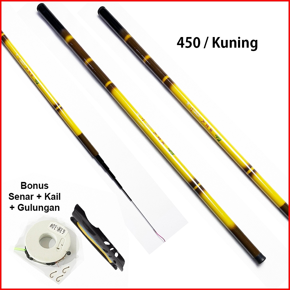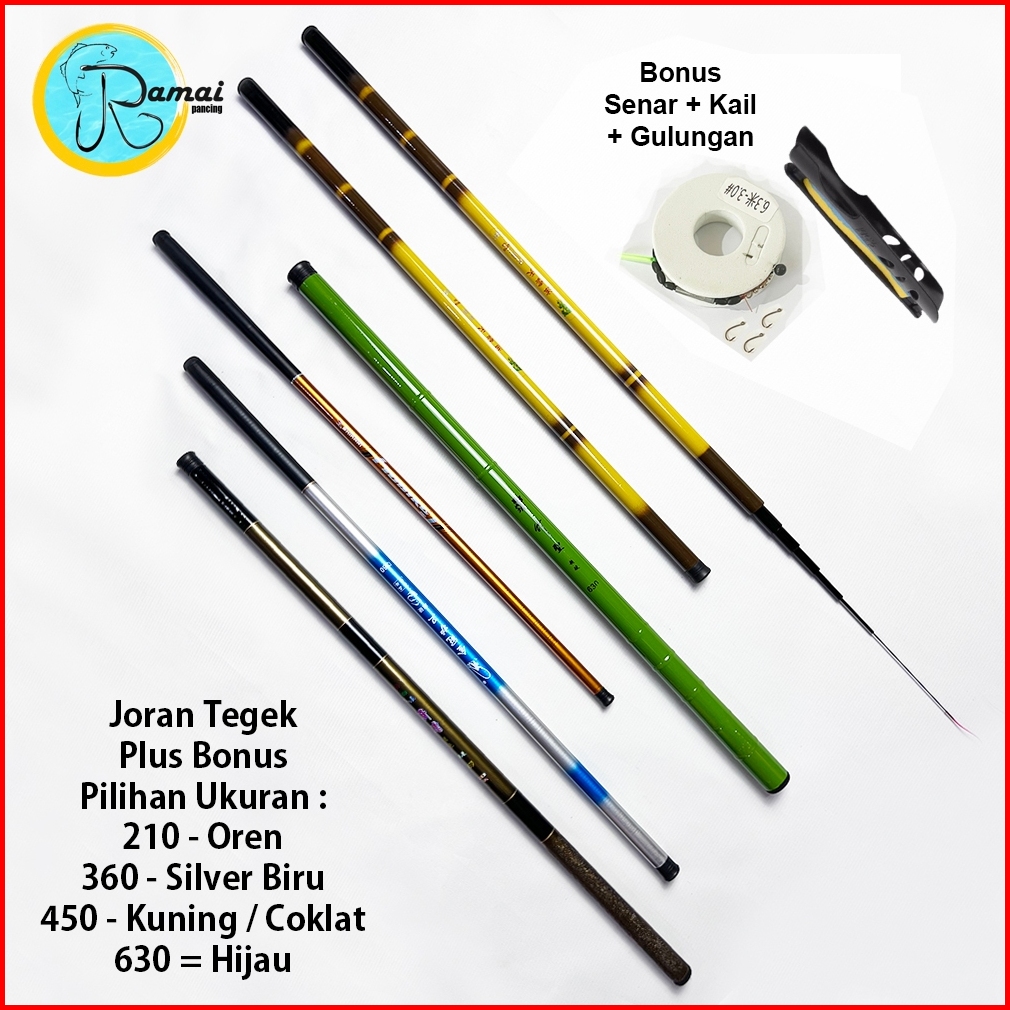 1 Set Joran Tegek Pancing Warna Siap Pakai Bonus Kail Gulungan Stopper Ukuran Lengkap
