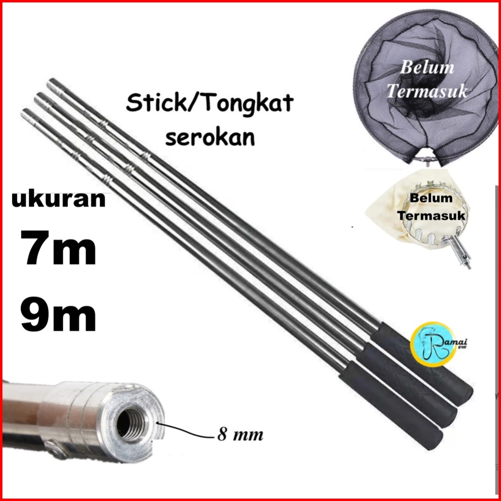 Tanggok Serokan Jala Ikan 7m 9m Jaring Portable Tongkat Jala Stik Serokan Ikan Telescopic