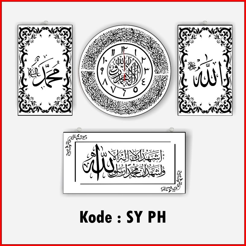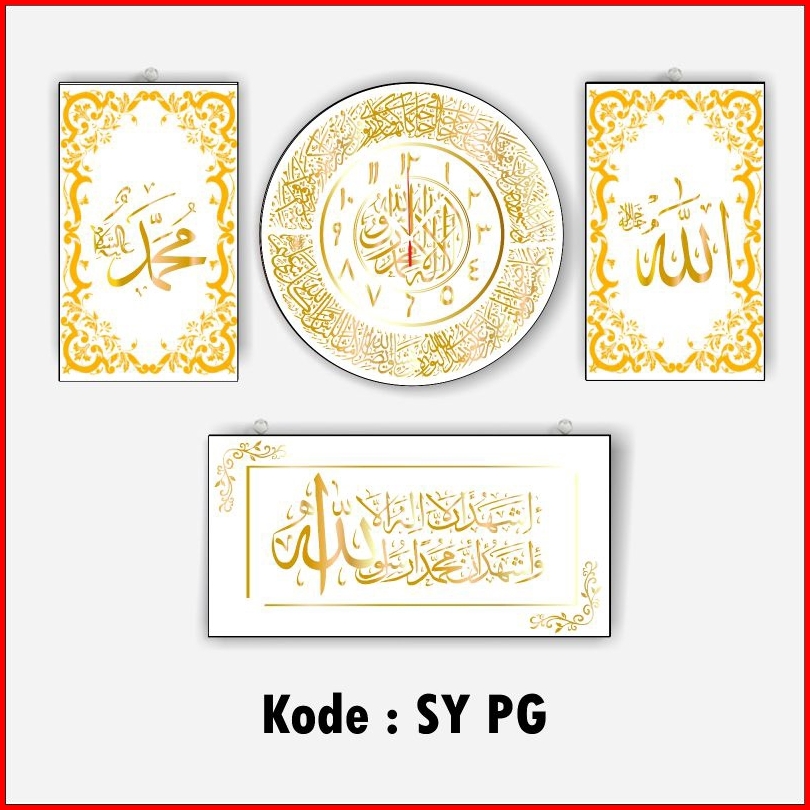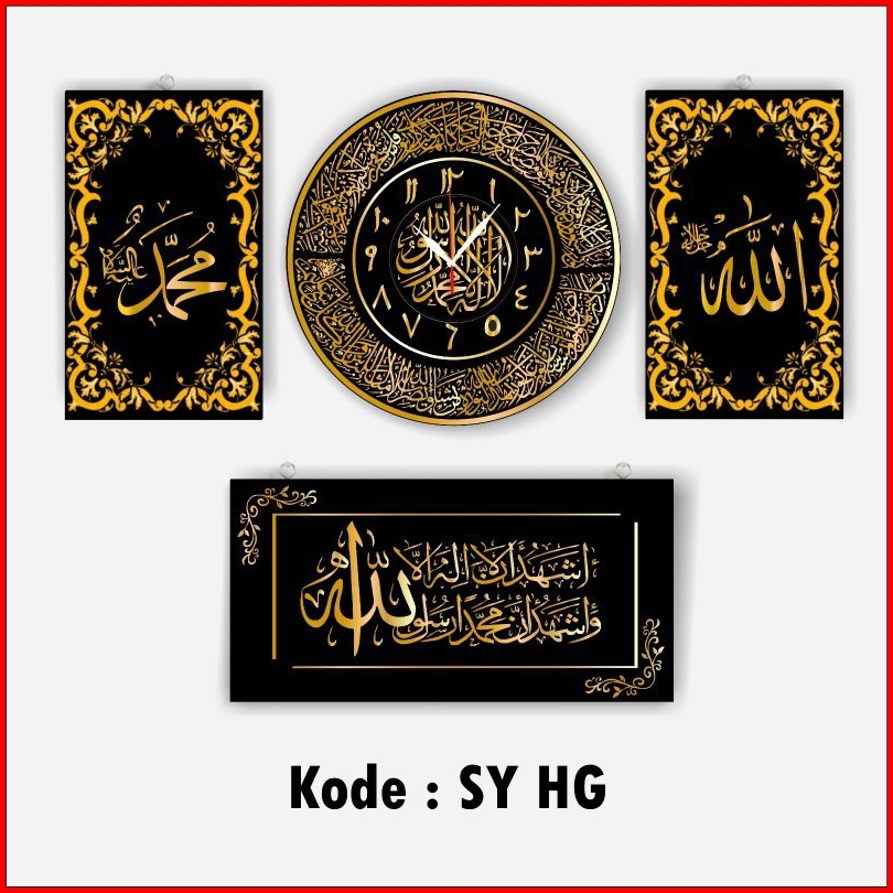 Jam Dinding Kaligrafi Arab Islami 1 Set Allah Muhammad Syahadat