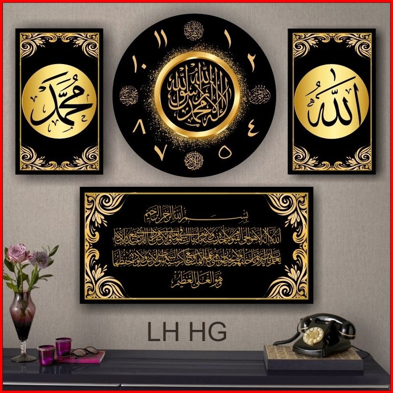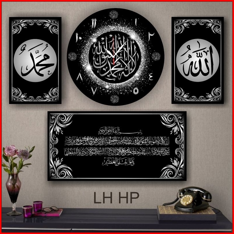 1 Set Jam Dinding Kaligrafi Terbaru Mewah Jam Dinding Islami Allah Muhammad Ayat Kursi Kalimat Tauhid